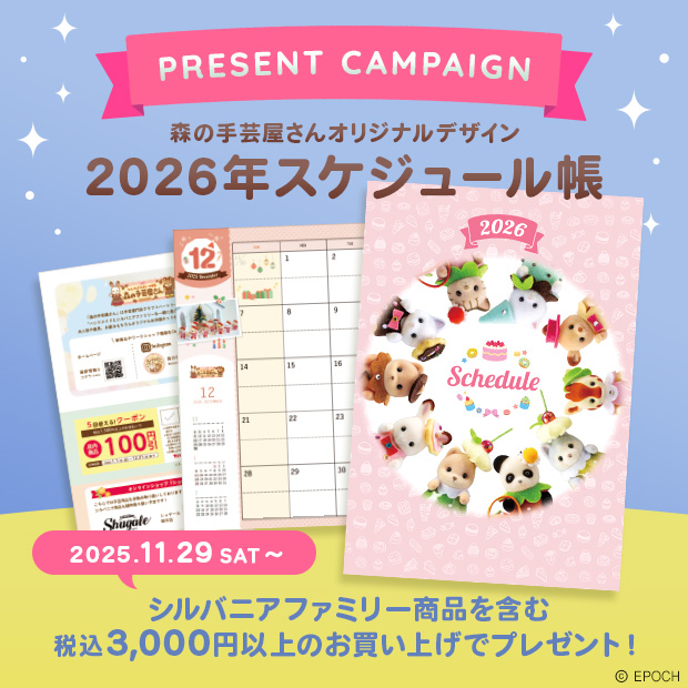 森の手芸屋さんオリジナル「シルバニアファミリー 2026年スケジュール帳」プレゼントキャンペーン