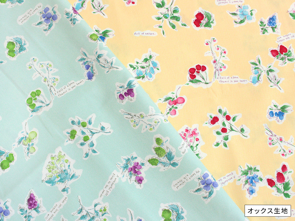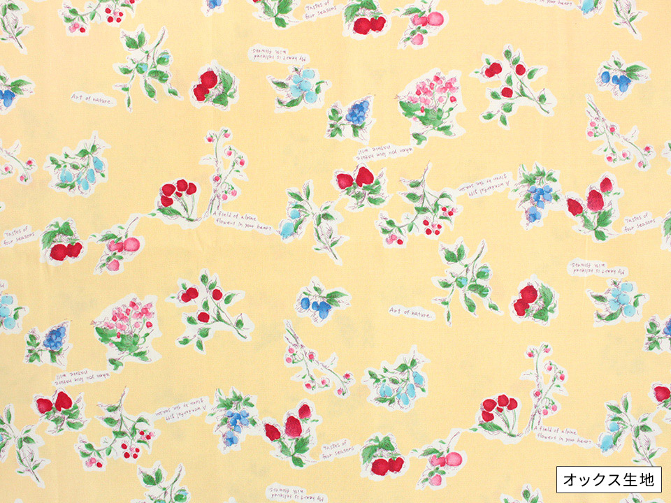 小物作りにぴったりな程よい厚みのオックスは、さわやかな植物のカードと、水彩風のフルーツ柄の2デザイン。