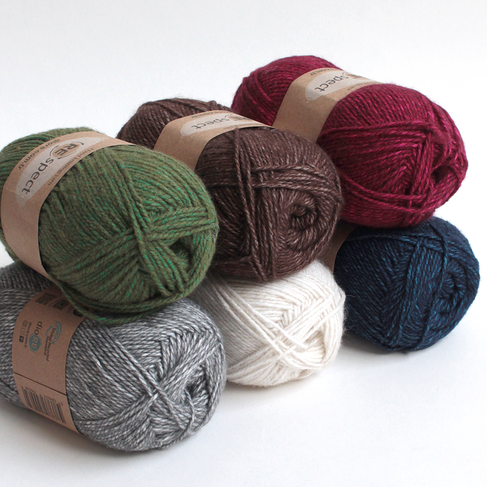 アクリル(リサイクル)50%・コットン(リサイクル))30%・ポリエステル(リサイクル)20%/約100g(約280m)/全6種類