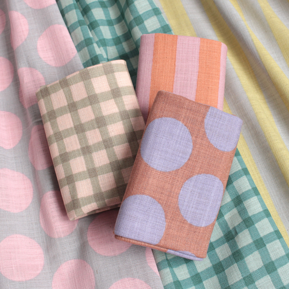 チェック・ストライプ・ドットのベーシック柄をプリントしたリネンライクスラブカットクロスに新色が登場です。