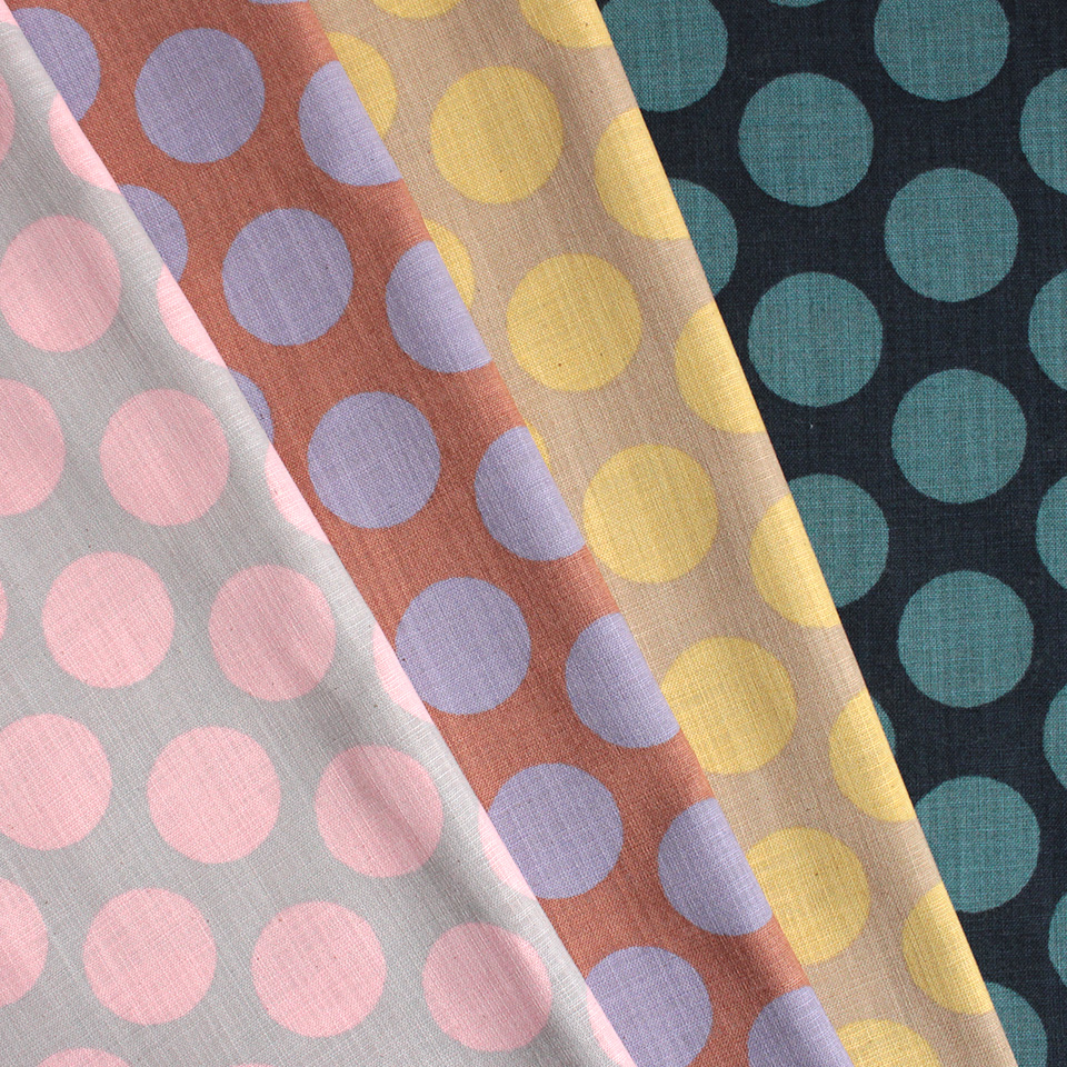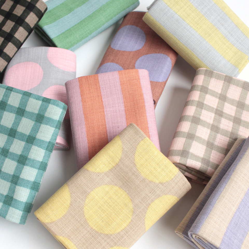 麻のような素材感と独特の色合いが、ベーシックな柄をかわいらしい雰囲気にしてくれます。