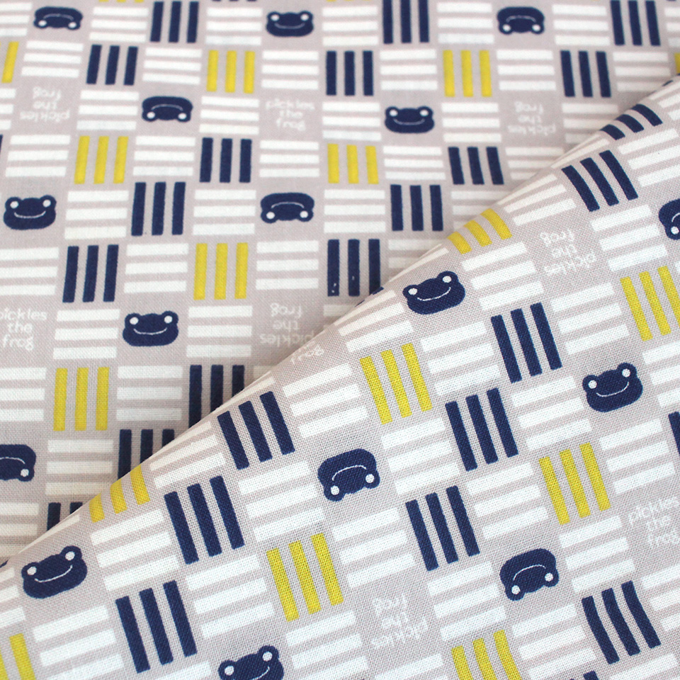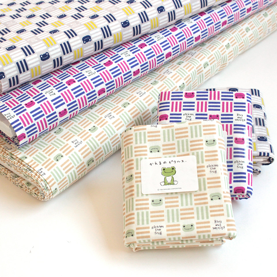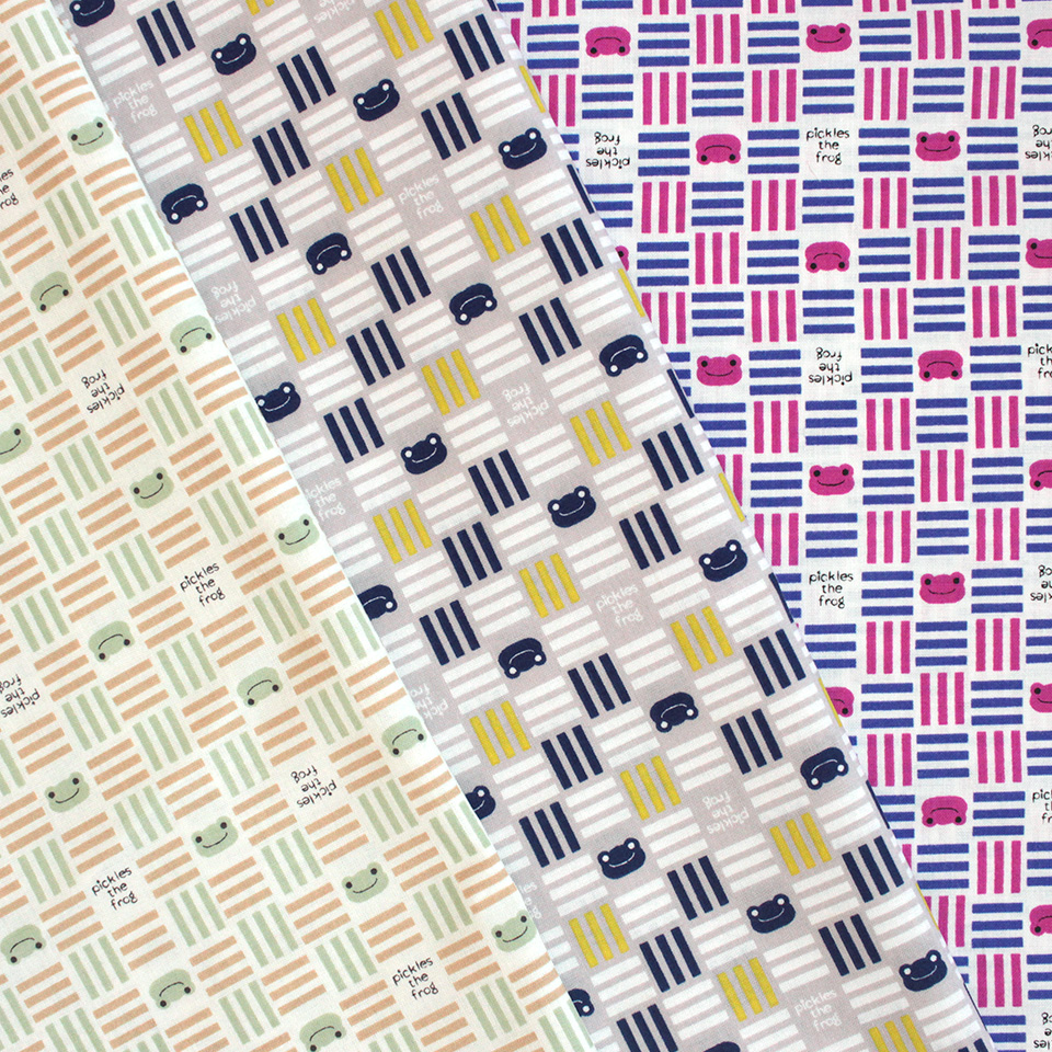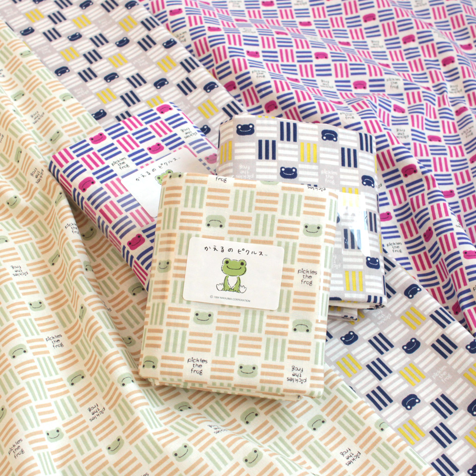 「かえるのピクルスにっこり縁日缶」に入っているファブリックが、色違い&生地単体で発売決定☆