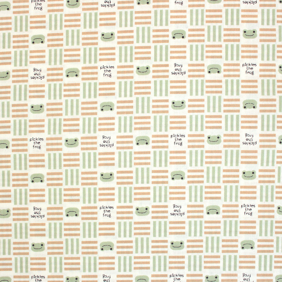 かえるのピクルスにっこり縁日 シーチング生地 反物/1mカットJAN:0491223013494