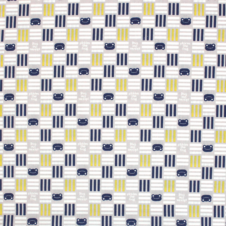 三本縞をブロックチェックのように配置した模様のなかに、ピクルスのお顔がチラリ☆