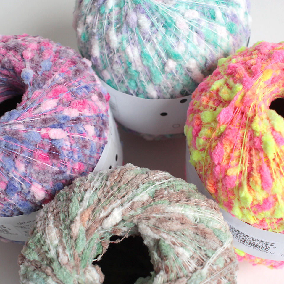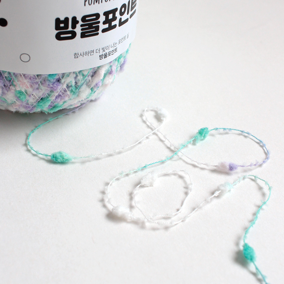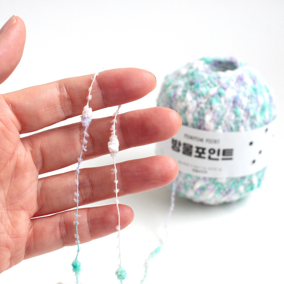 『pom pom point(ポンポンポイント)』は、細い糸にしずくのような膨らみがポコポコついたノットヤーンです。