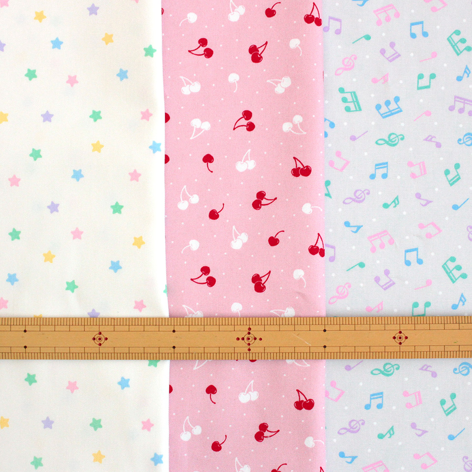 星・さくらんぼ・音符・リボン・いちごチェックの5柄で、それぞれ4色展開です。