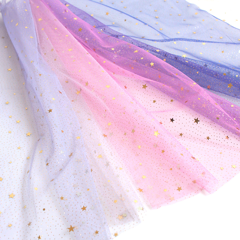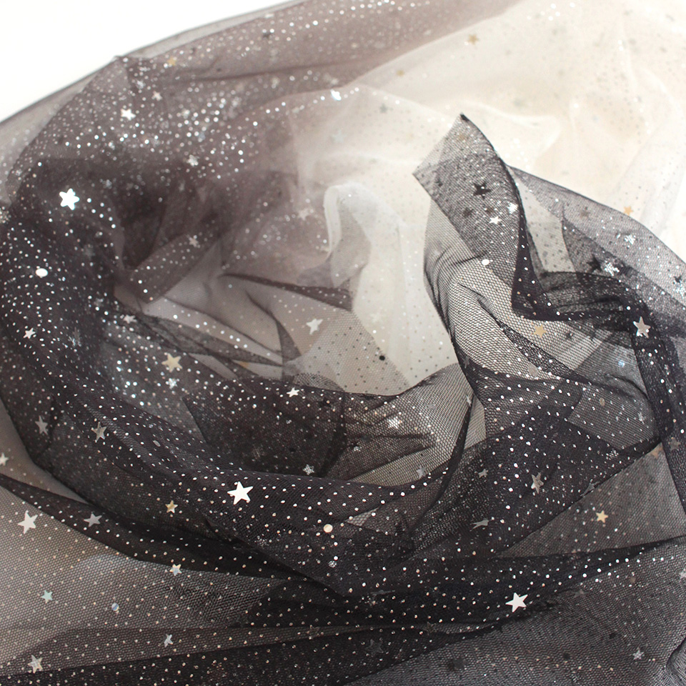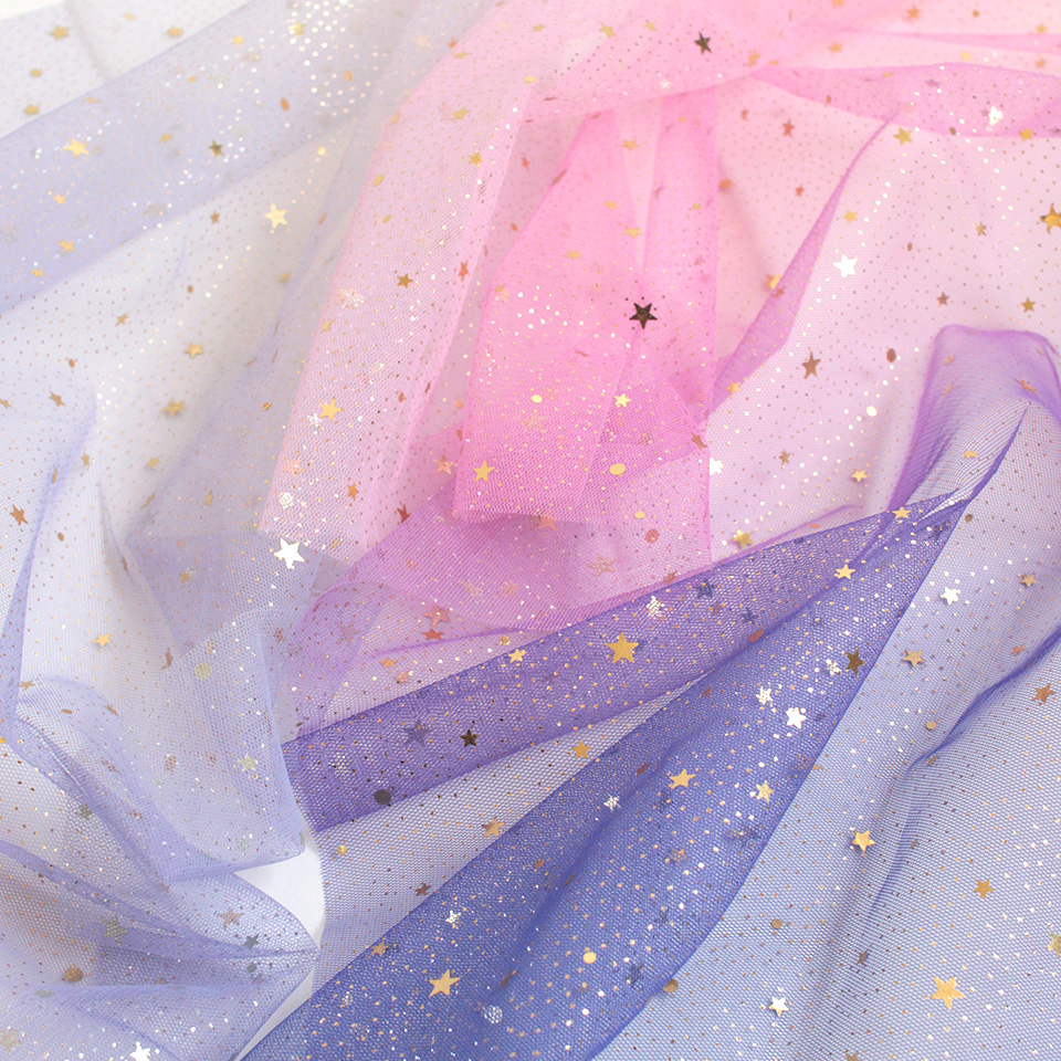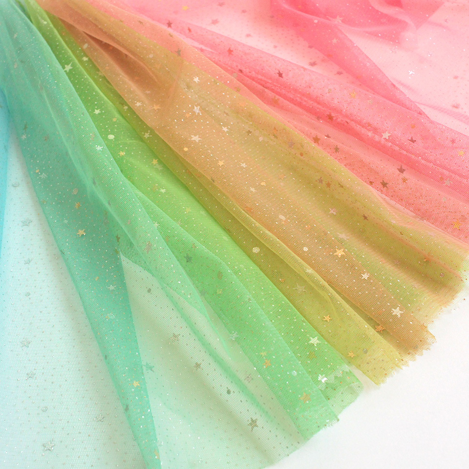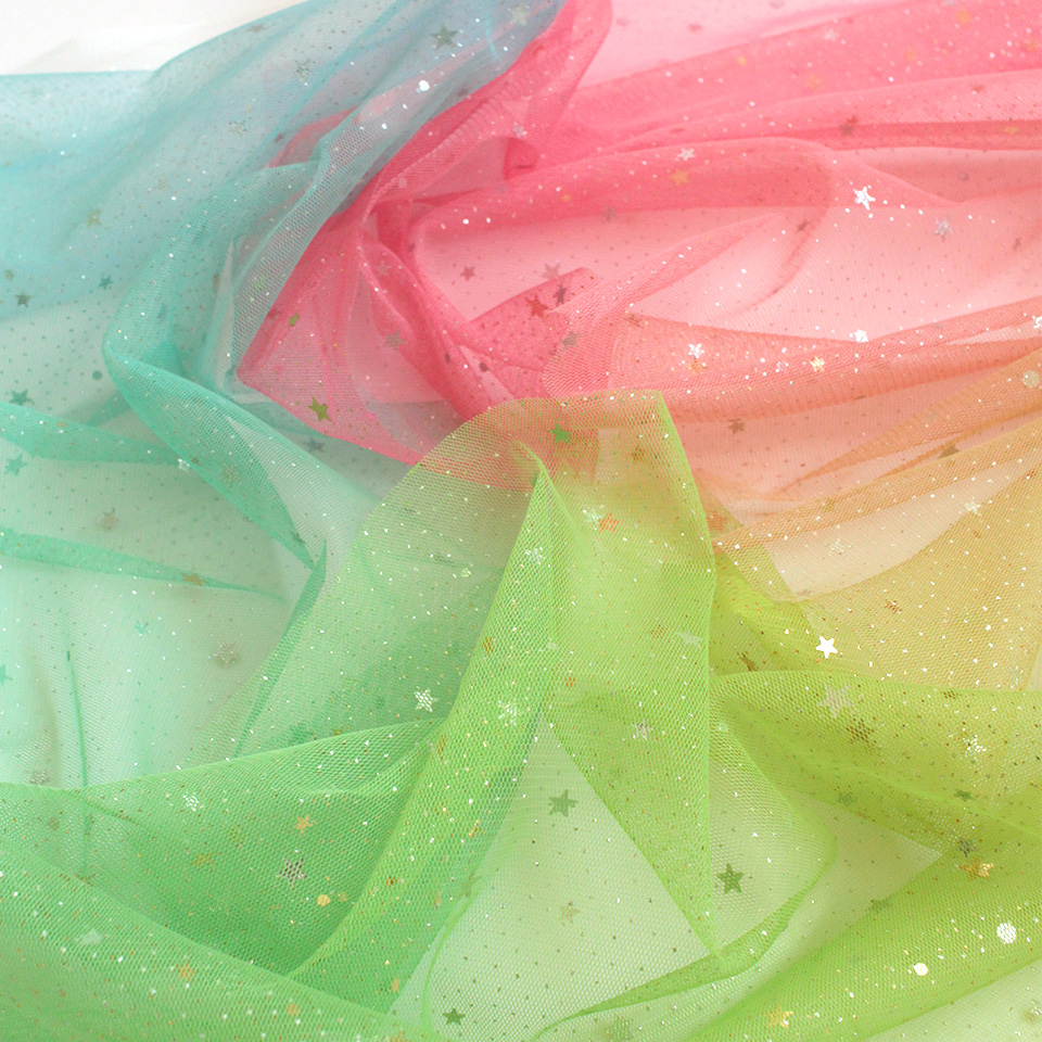 星型スパンコールとラメをちりばめた、グラデーションカラーのソフトチュールです。