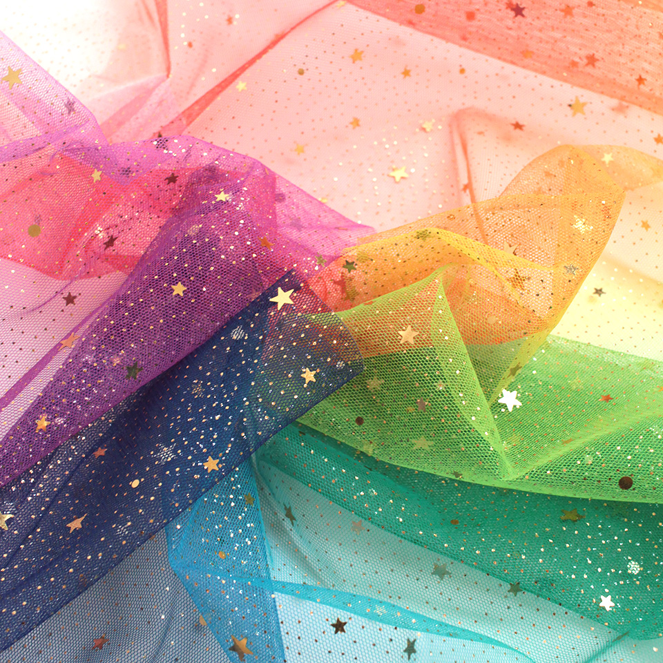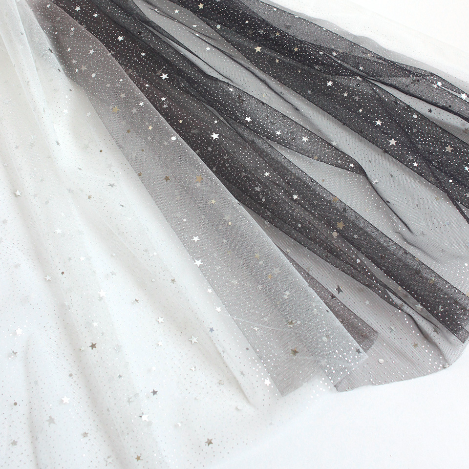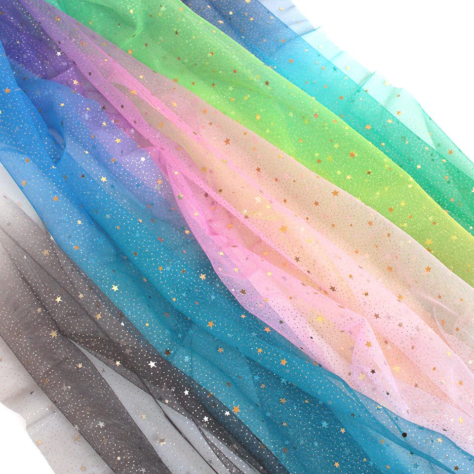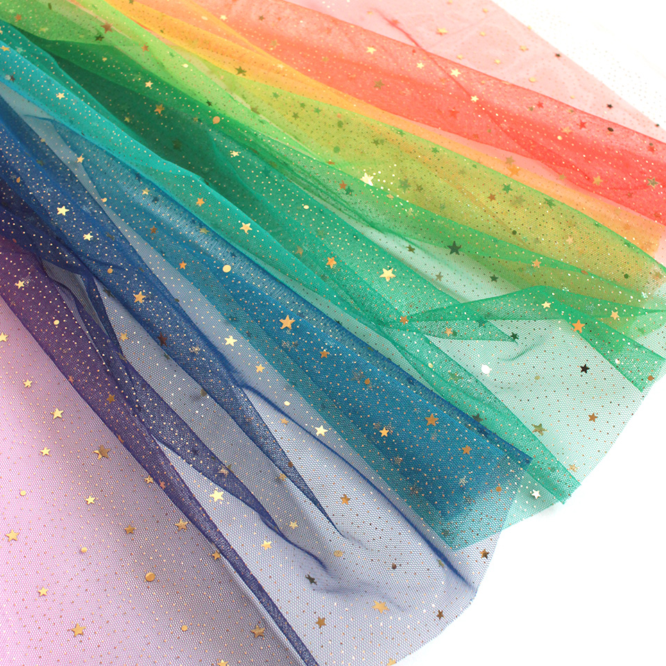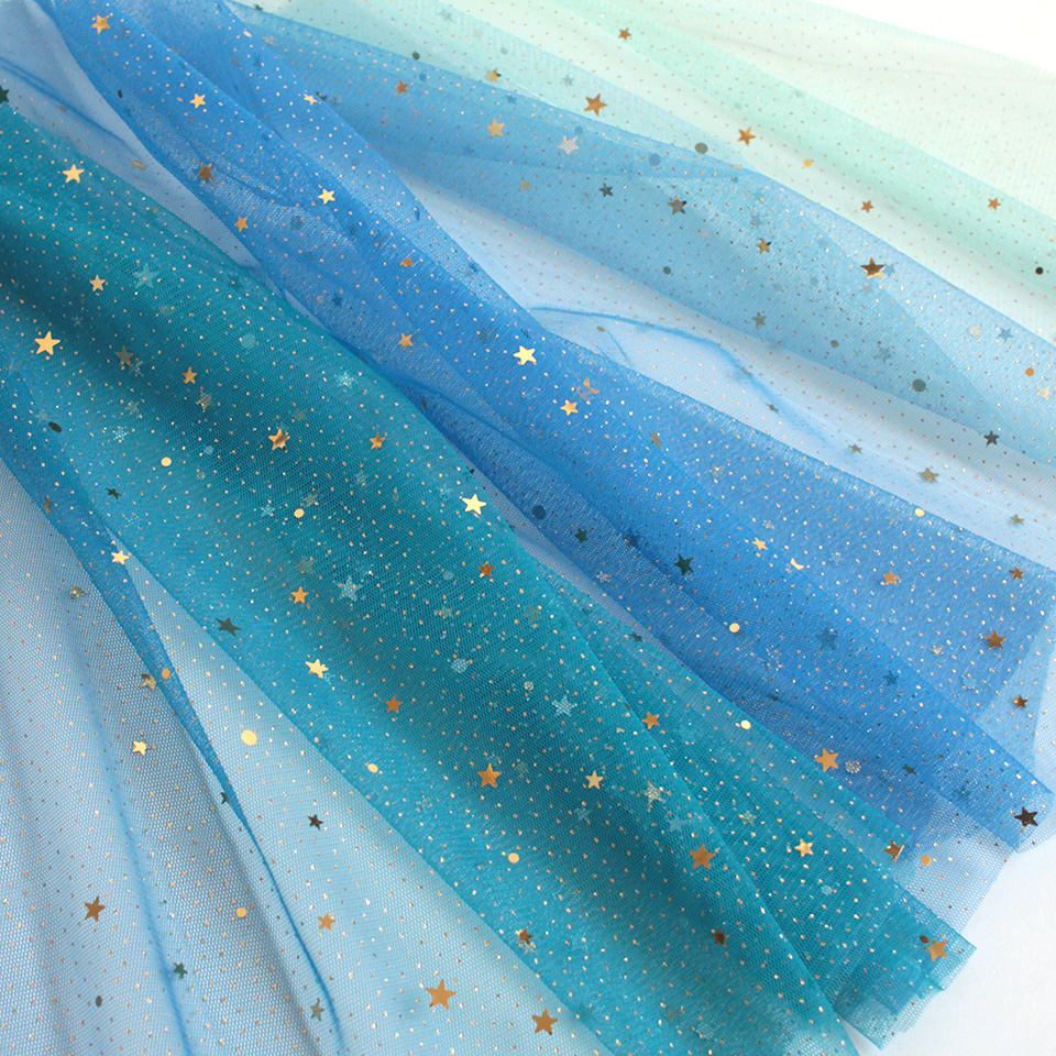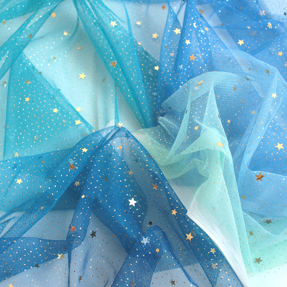 星型スパンコールとラメをちりばめた、グラデーションカラーのソフトチュールです。