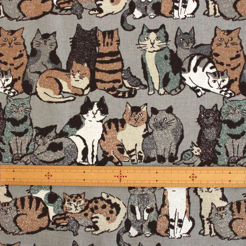 ART CAT 猫ボーダー柄 綿麻キャンバス50cmカットJAN:4512029340099