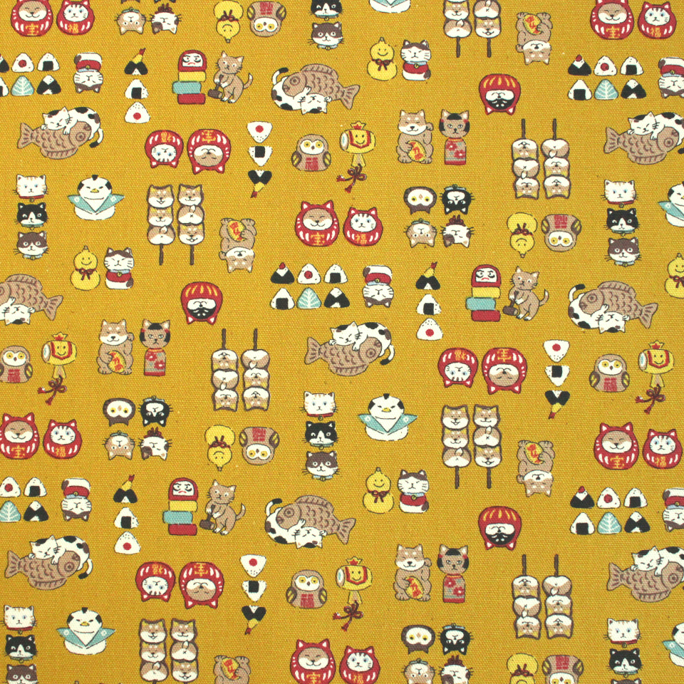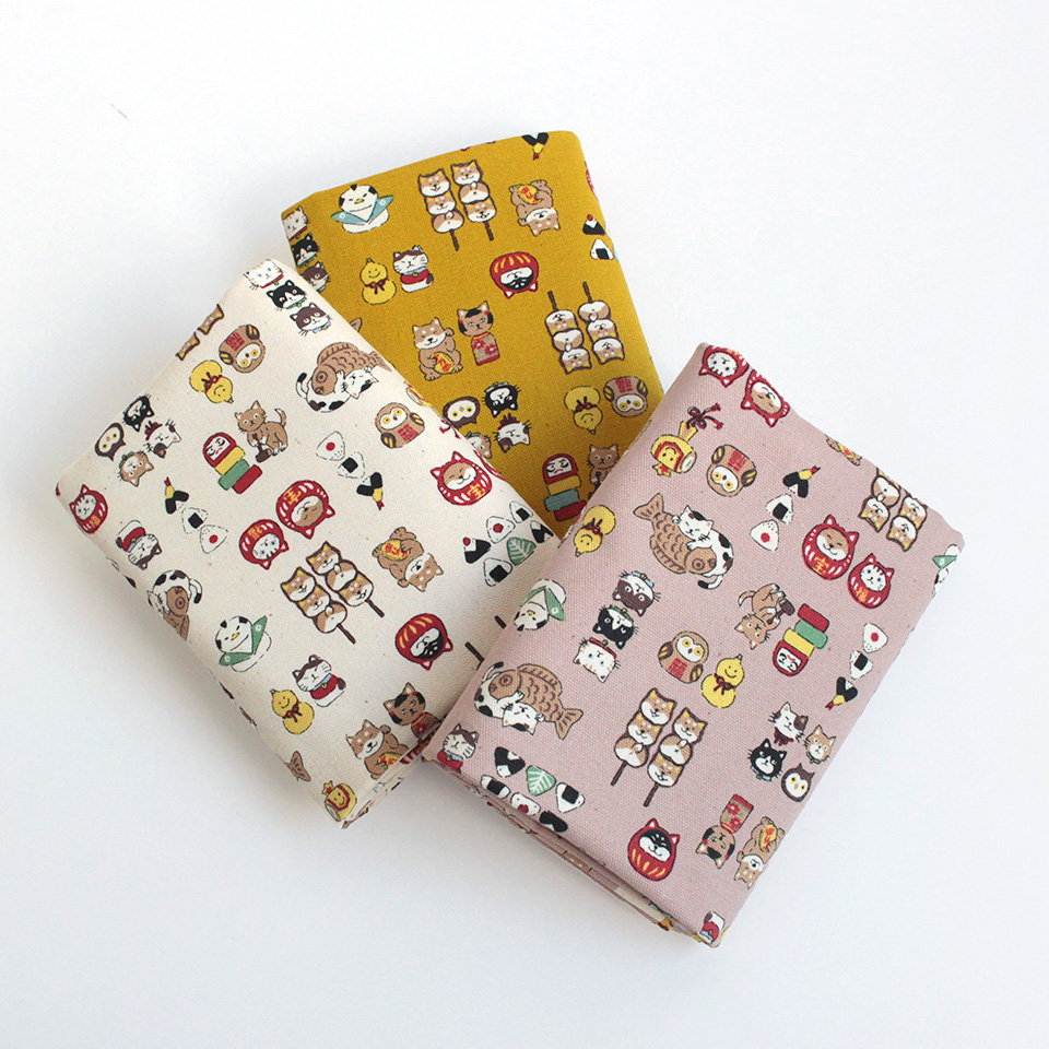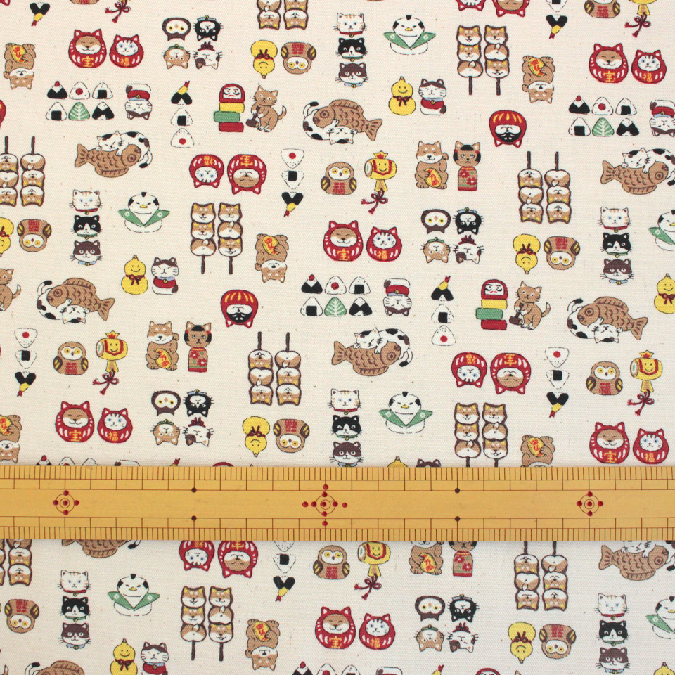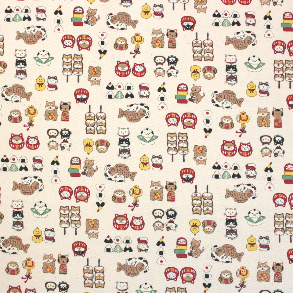 和のモチーフ×動物をミックスした遊び心いっぱいのプリント生地です。