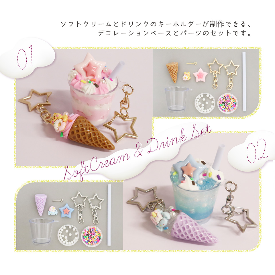 ソフトクリームとドリンクカップのパーツセットのほか、どちらも作れるスペシャルセットもご用意しています。