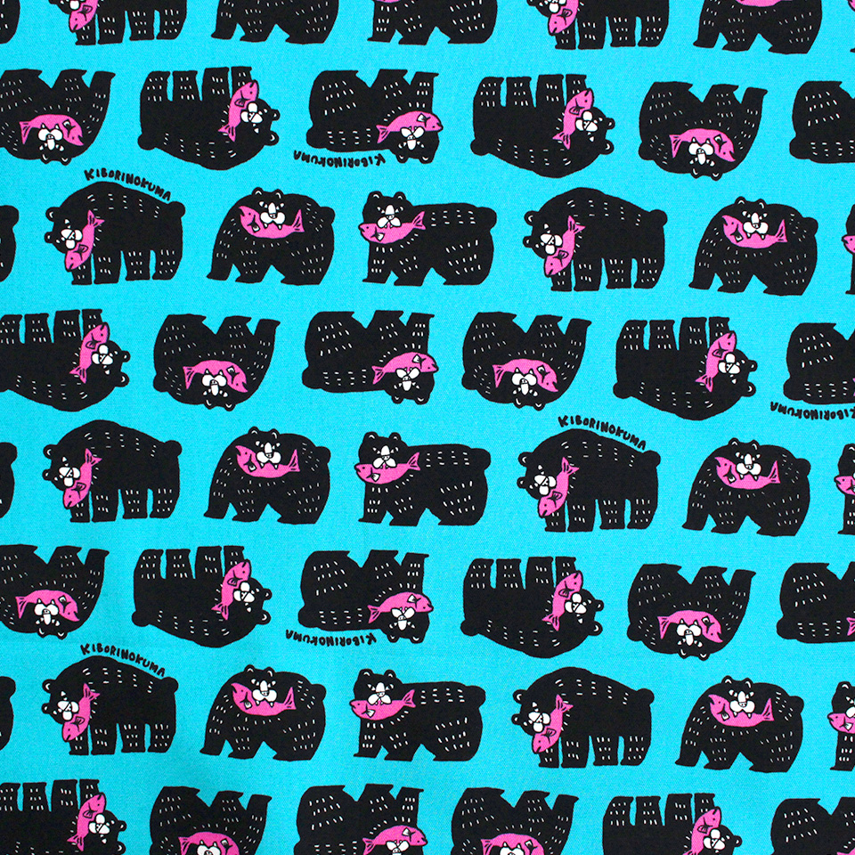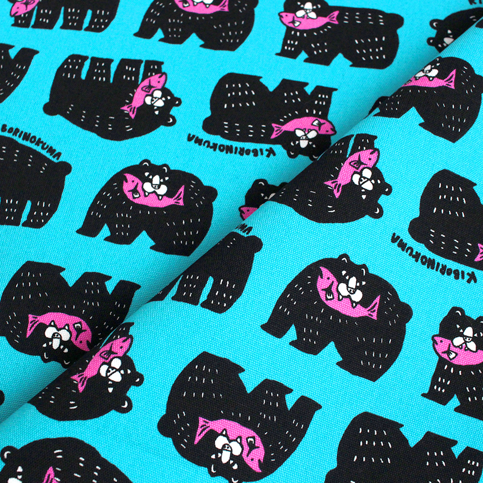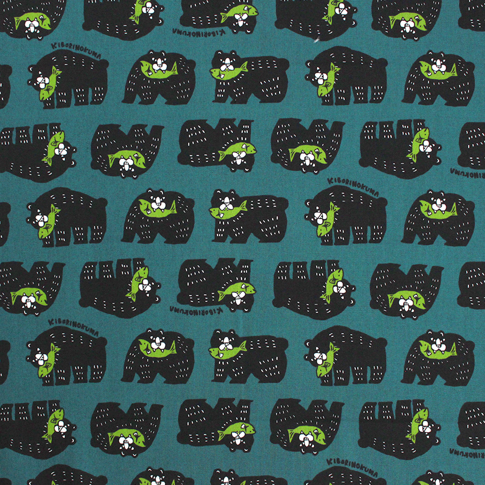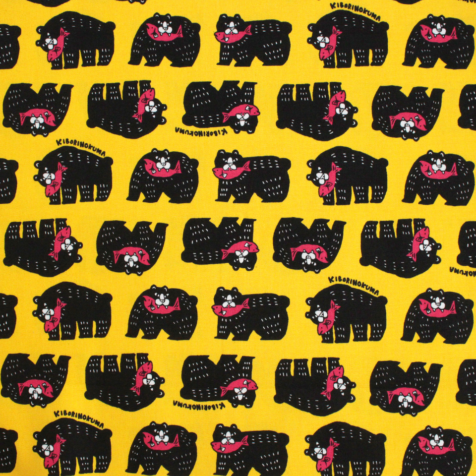 北海道を代表する民芸品「木彫りのクマ」をポップに描いたプリント生地です。