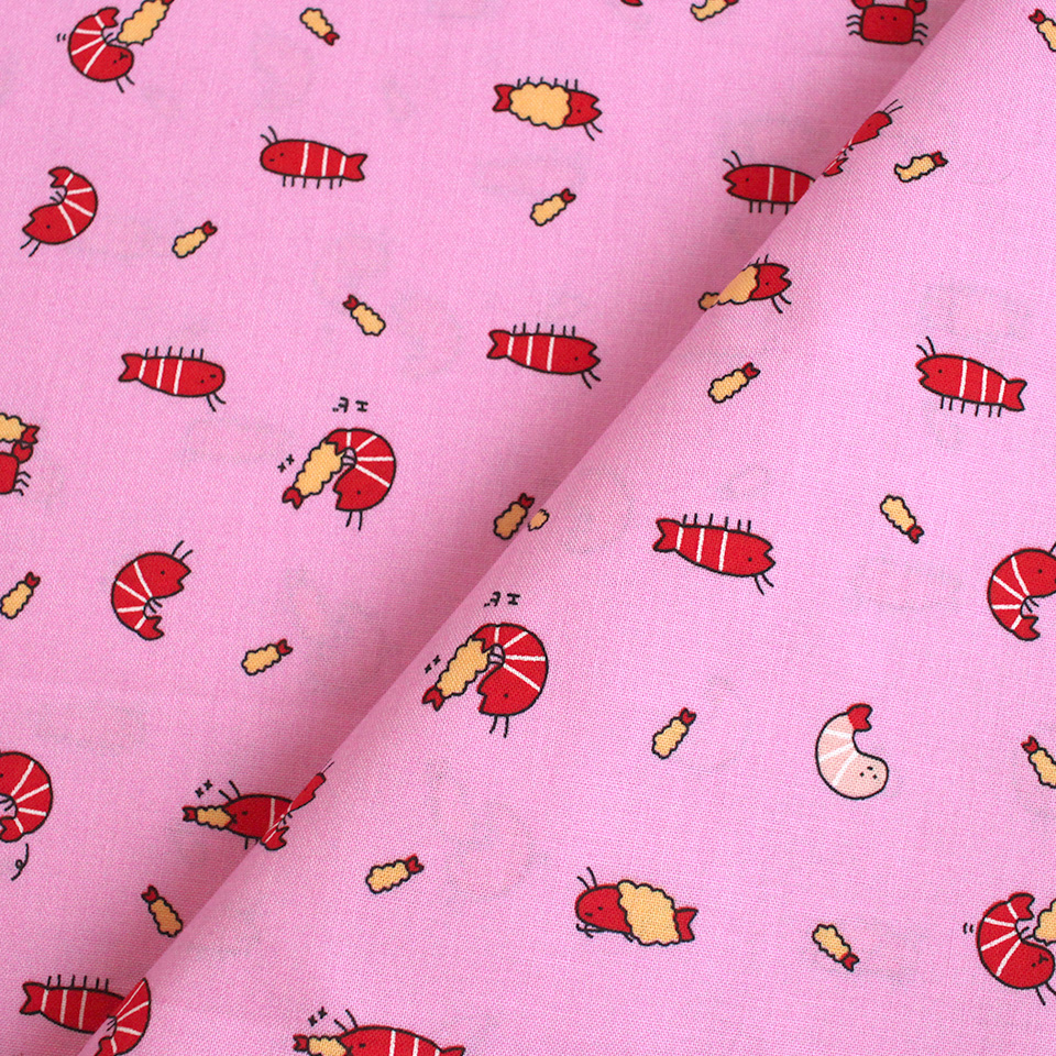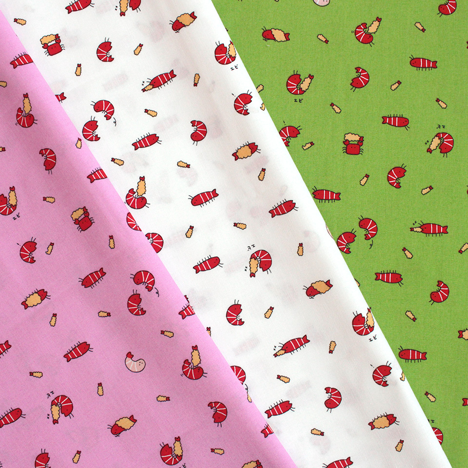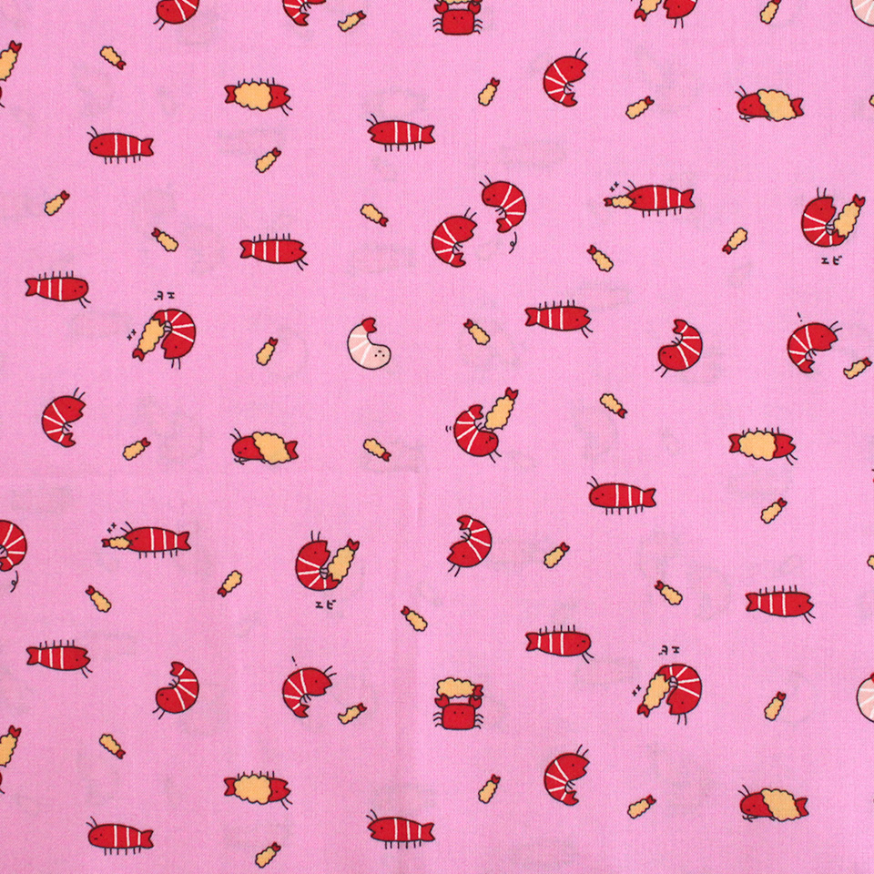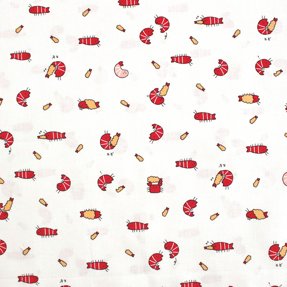 縁起物としても愛されるエビの柄は、たまにむき身になったり、フライになったり、ユーモアいっぱいのデザイン。