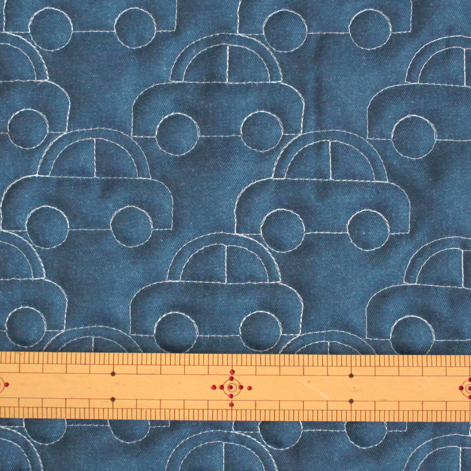 デニム「風」のポリエステル製の生地だから、縫いやすくて軽い仕上がりに。