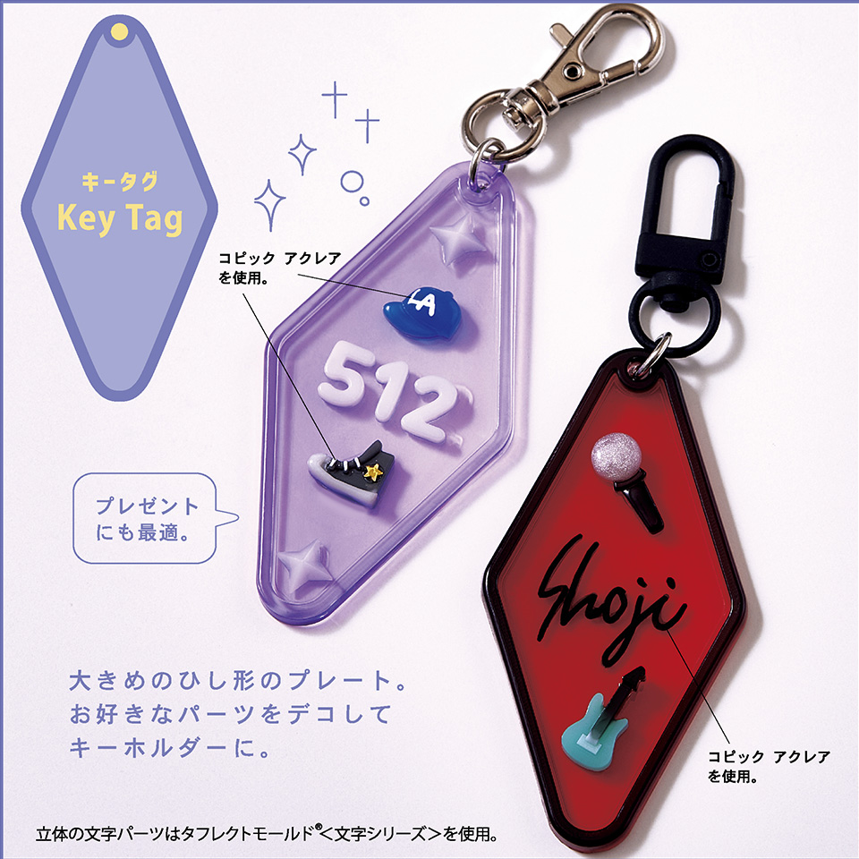 シンプルで使いやすさバツグンの「キータグ」と、キュートな形が勢ぞろいした「モチーフ」の2タイプです。