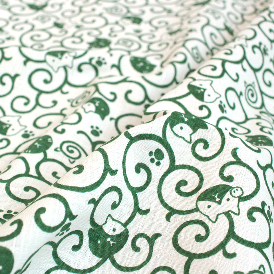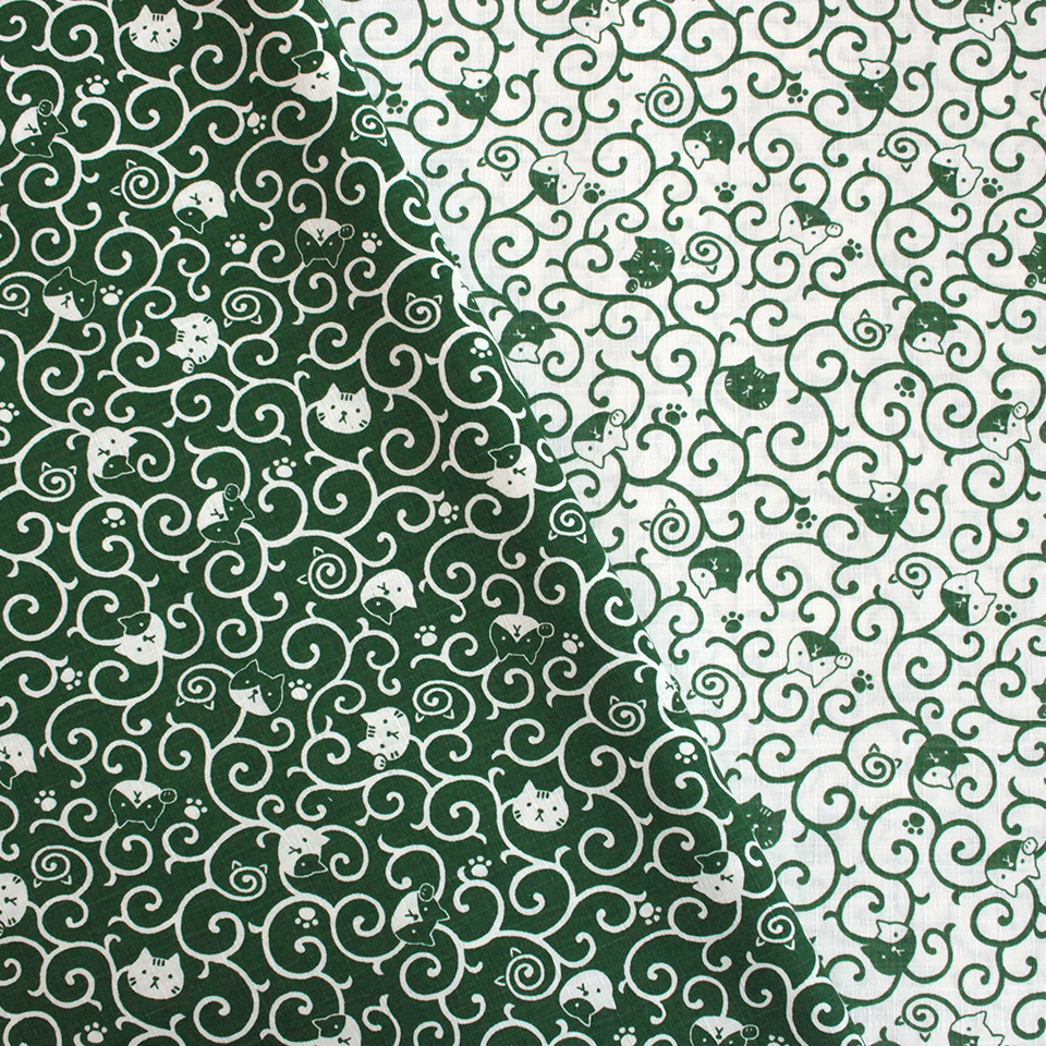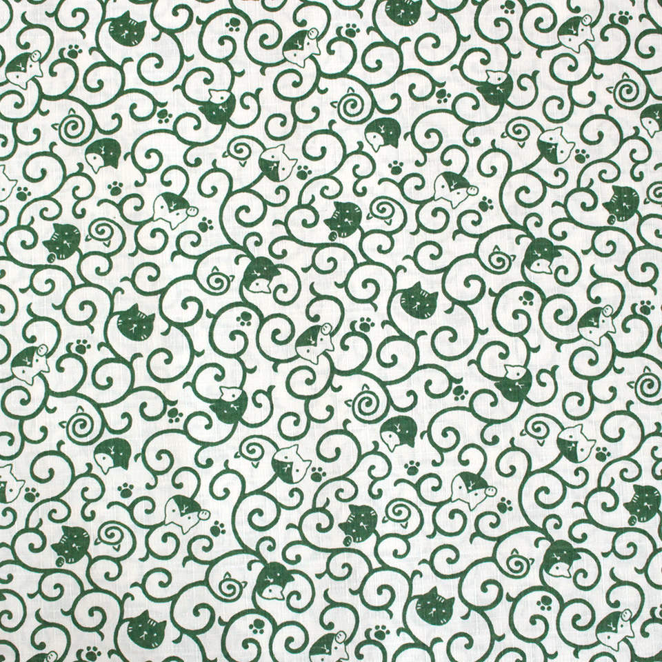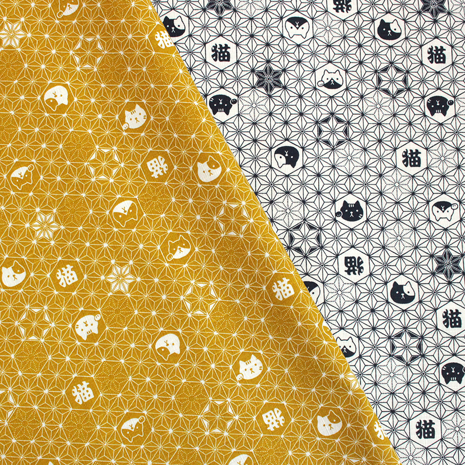 足跡と耳のカタチがこっそり隠れた唐草模様と、『猫』の漢字がアクセントになった麻の葉模様の2柄展開。