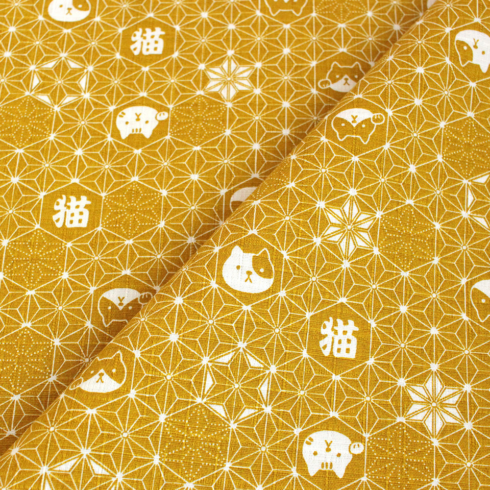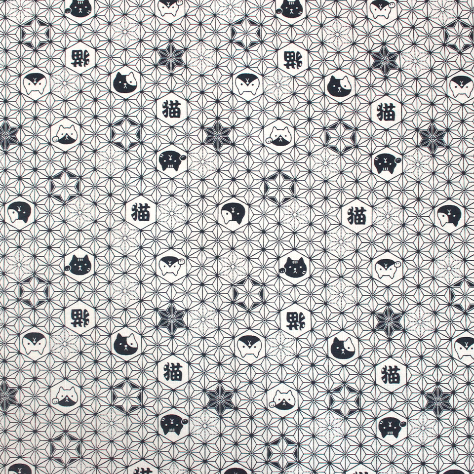 日本の伝統的な吉祥文様と、猫のイラストを組み合わせたかわいい和柄カットクロスです。