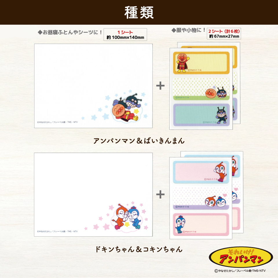アンパンマン&ばいきんまん、ドキンちゃん&コキンちゃんの2種類展開。