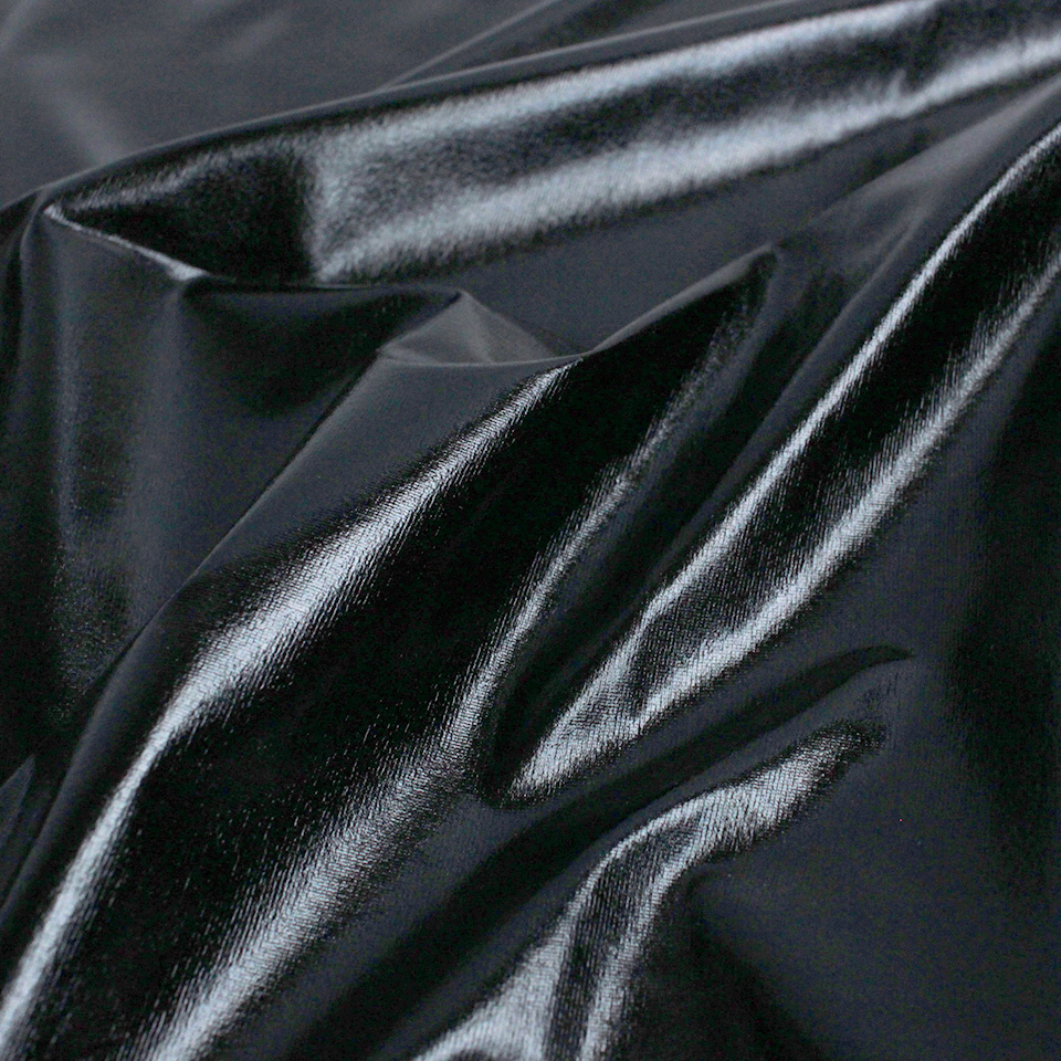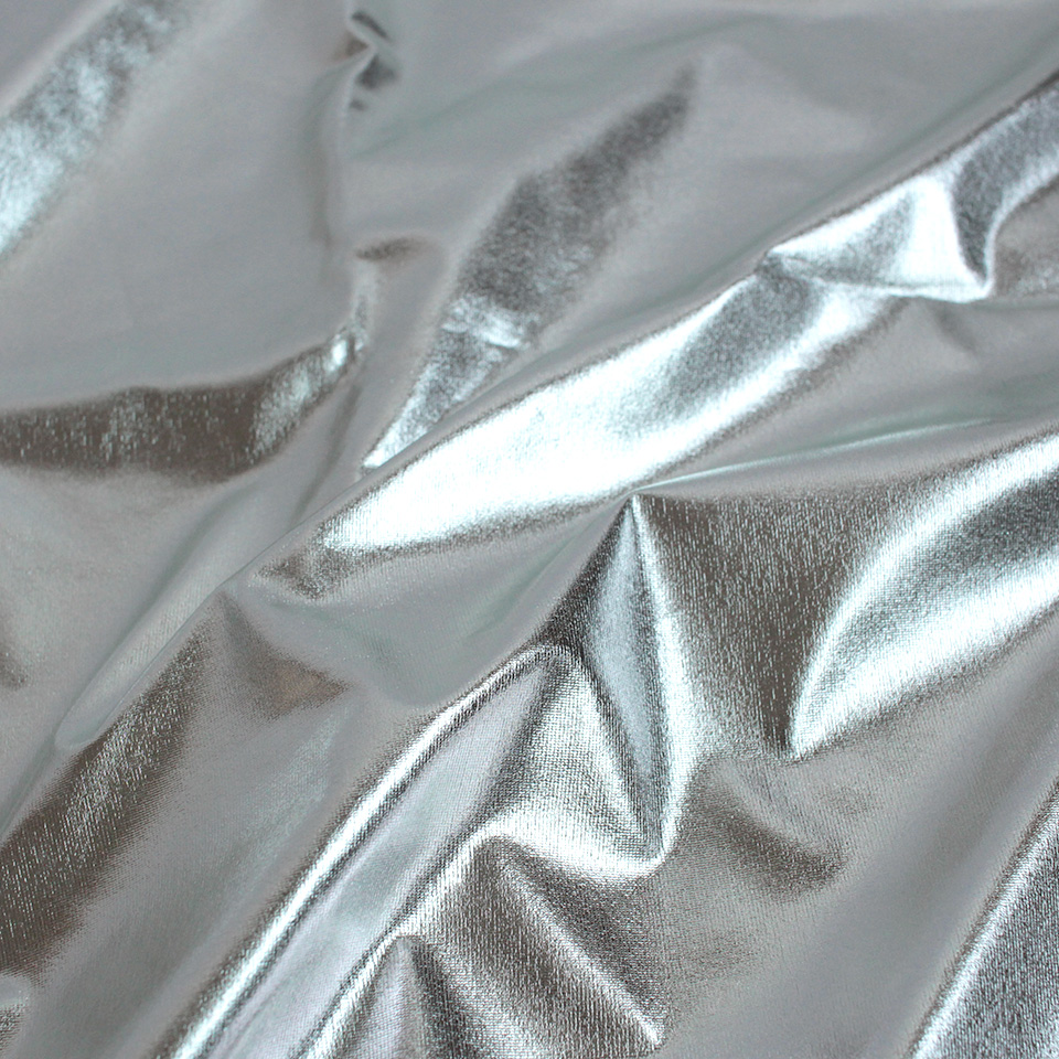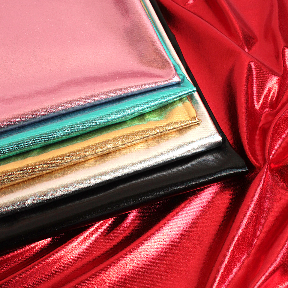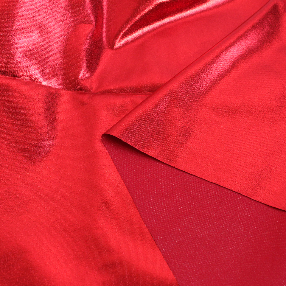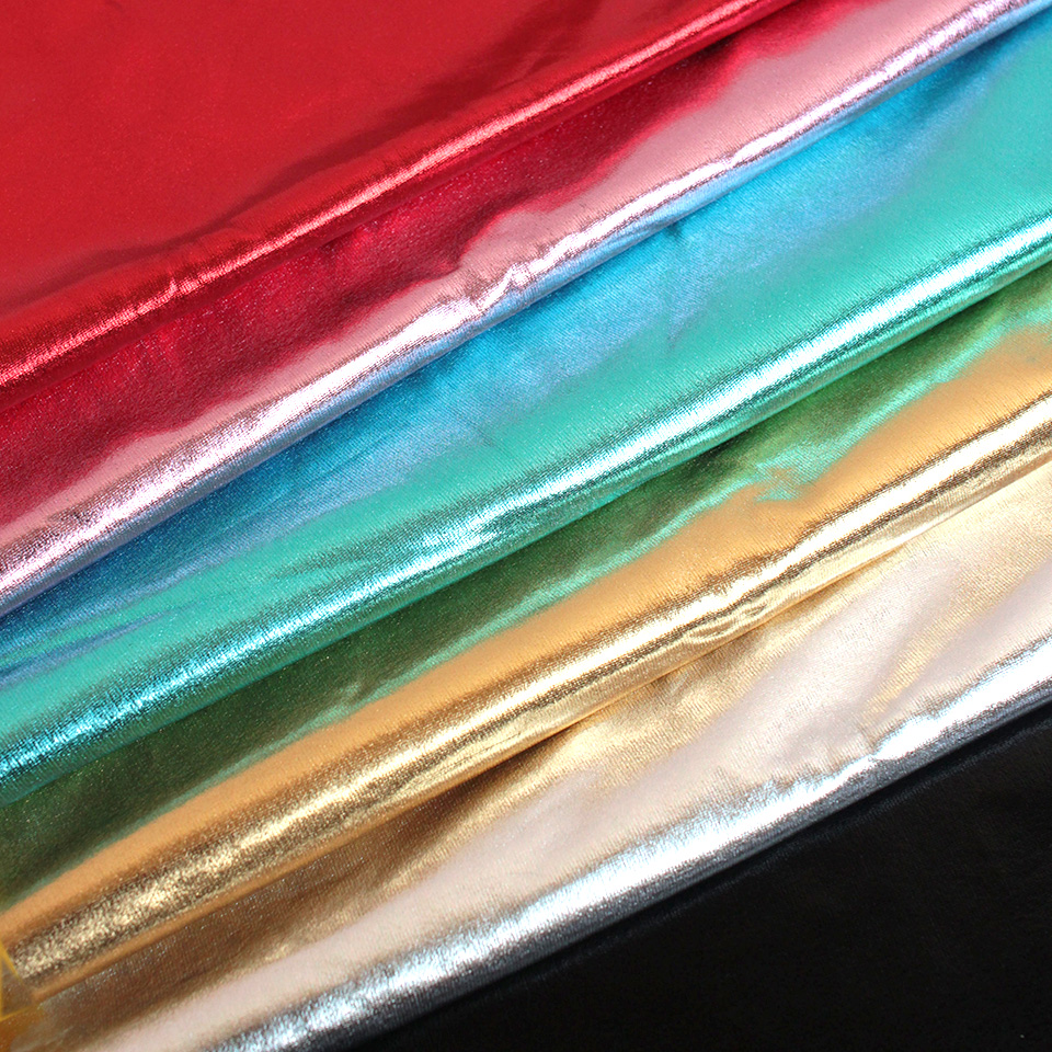メタリックフィルムを張り付けた合皮風の光沢生地です。