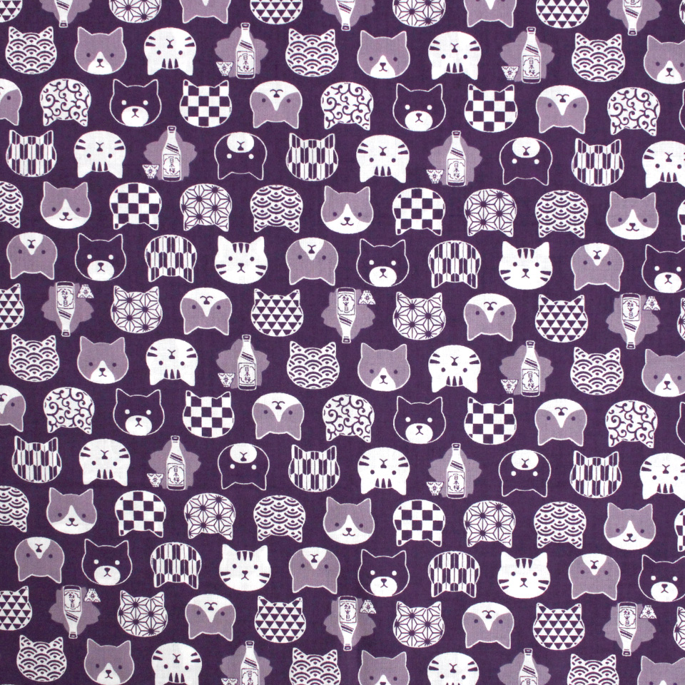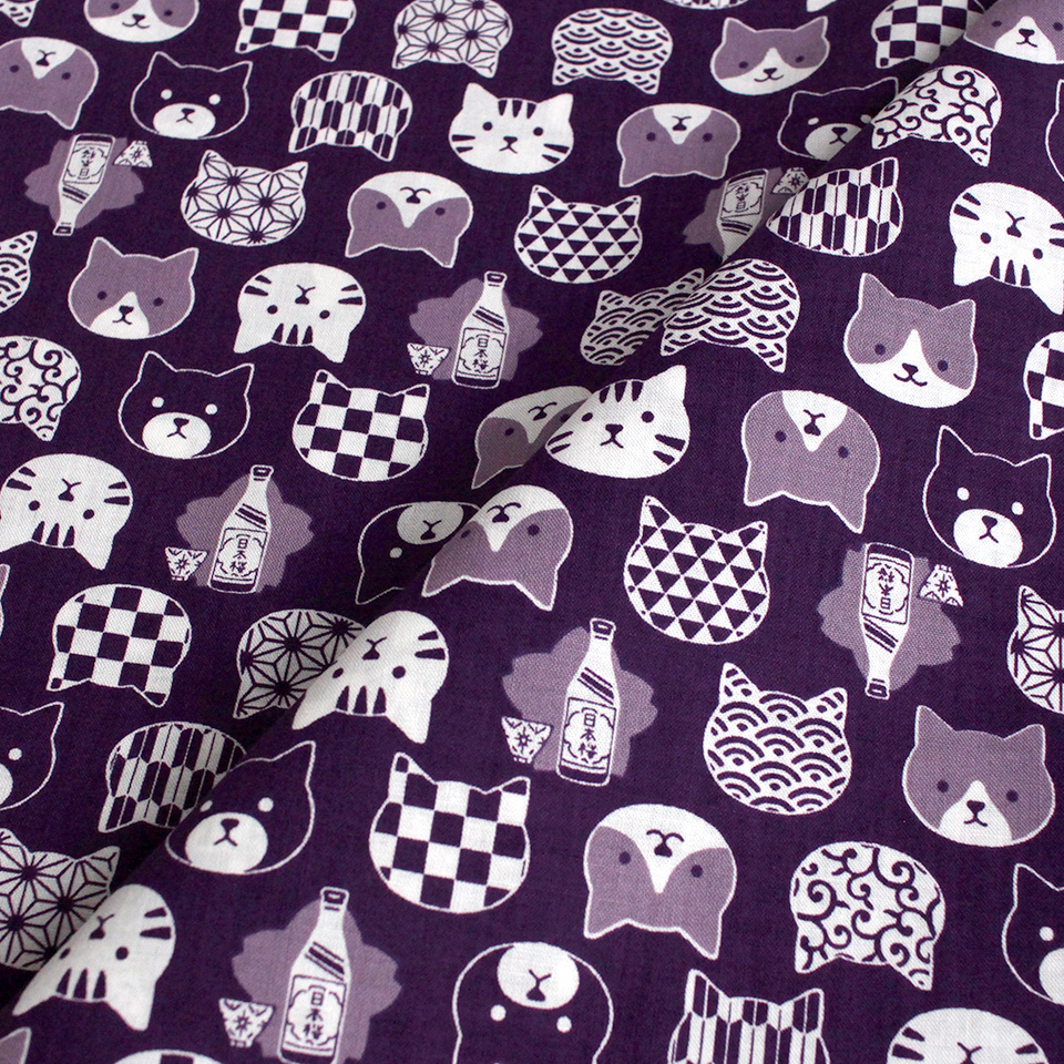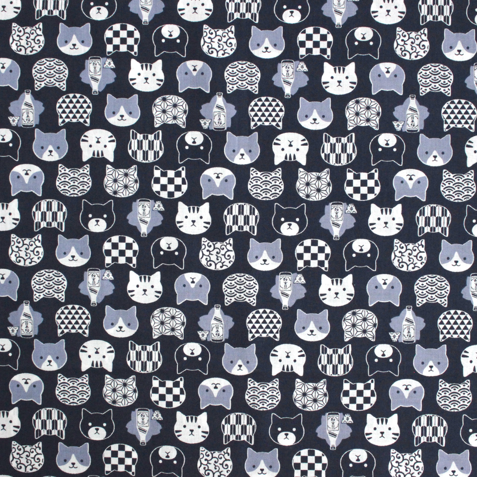 布和里・染布 猫模様 50cmカット オックス生地JAN:0491223016365
