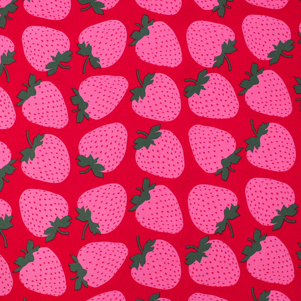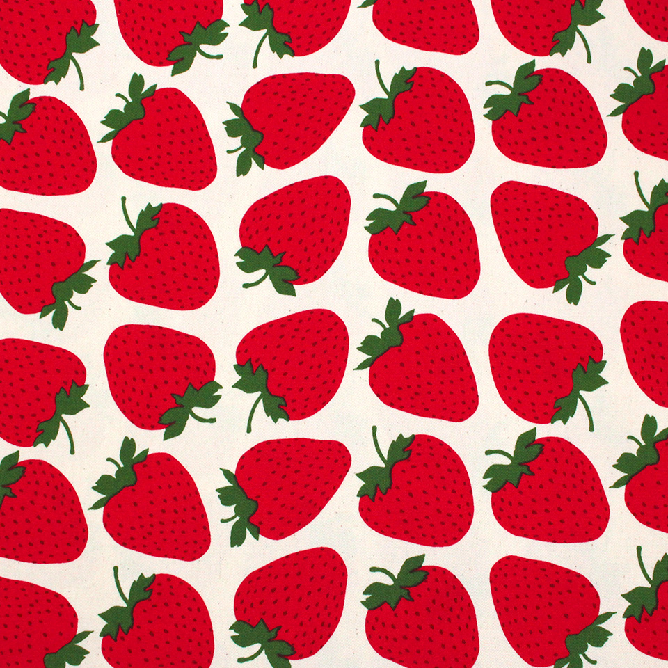 真っ赤でキュートなルックスにキュンとなるいちご柄をプリントしたカットクロスです。