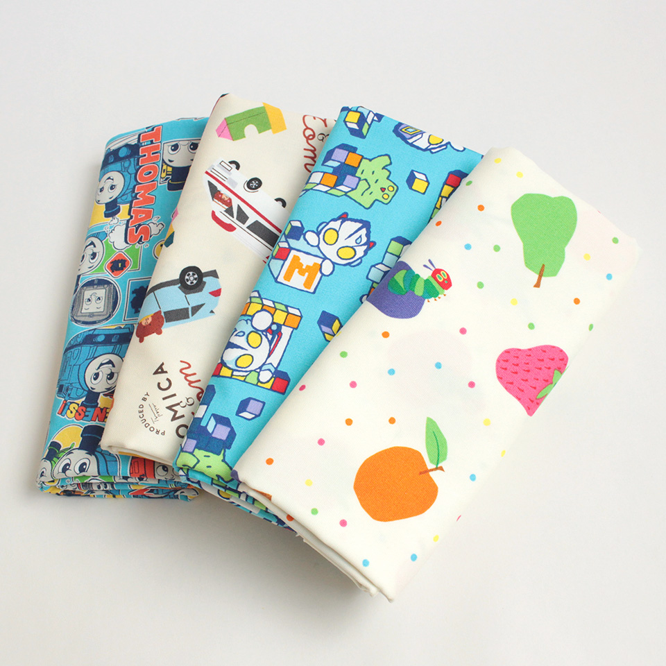 個性豊かな仲間がいっぱい「機関車トーマス」、新しいトミカの世界を描いた「トミカとトム」、2頭身でかわいくデフォルメ「ウルトラマン」、絵本から飛び出したような色彩豊かな「はらぺこあおむし」の全4柄。