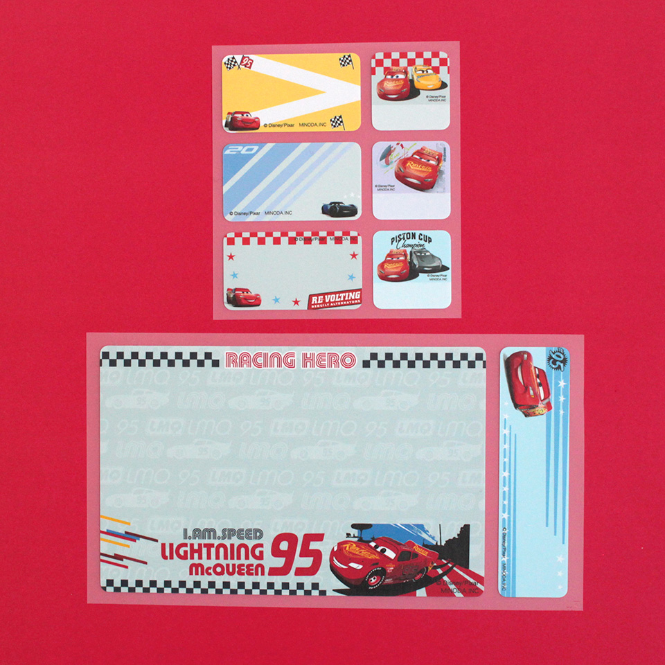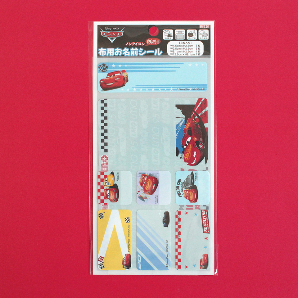 布用お名前シールは「カーズ」のデザイン。
