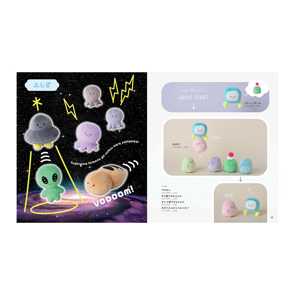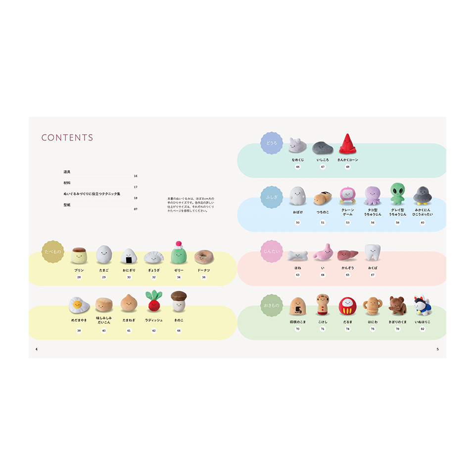 いろいろなカタチをした手のひらサイズのぬいぐるみマスコット30点が掲載されています。