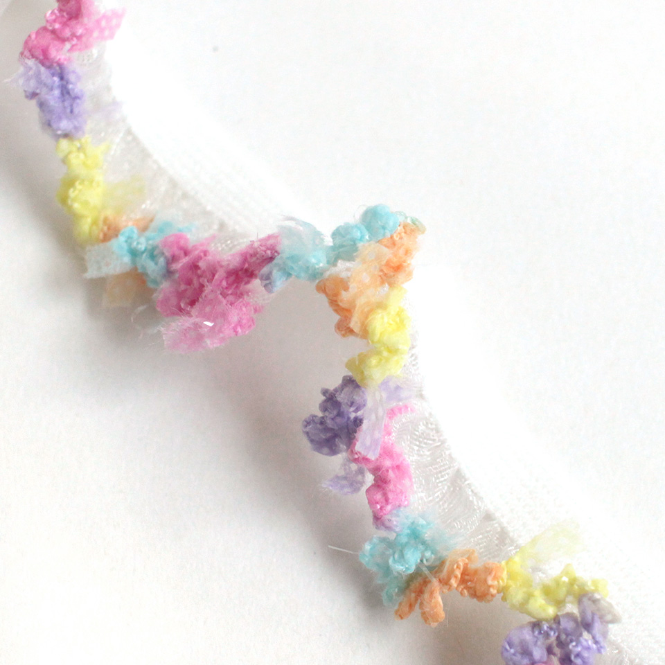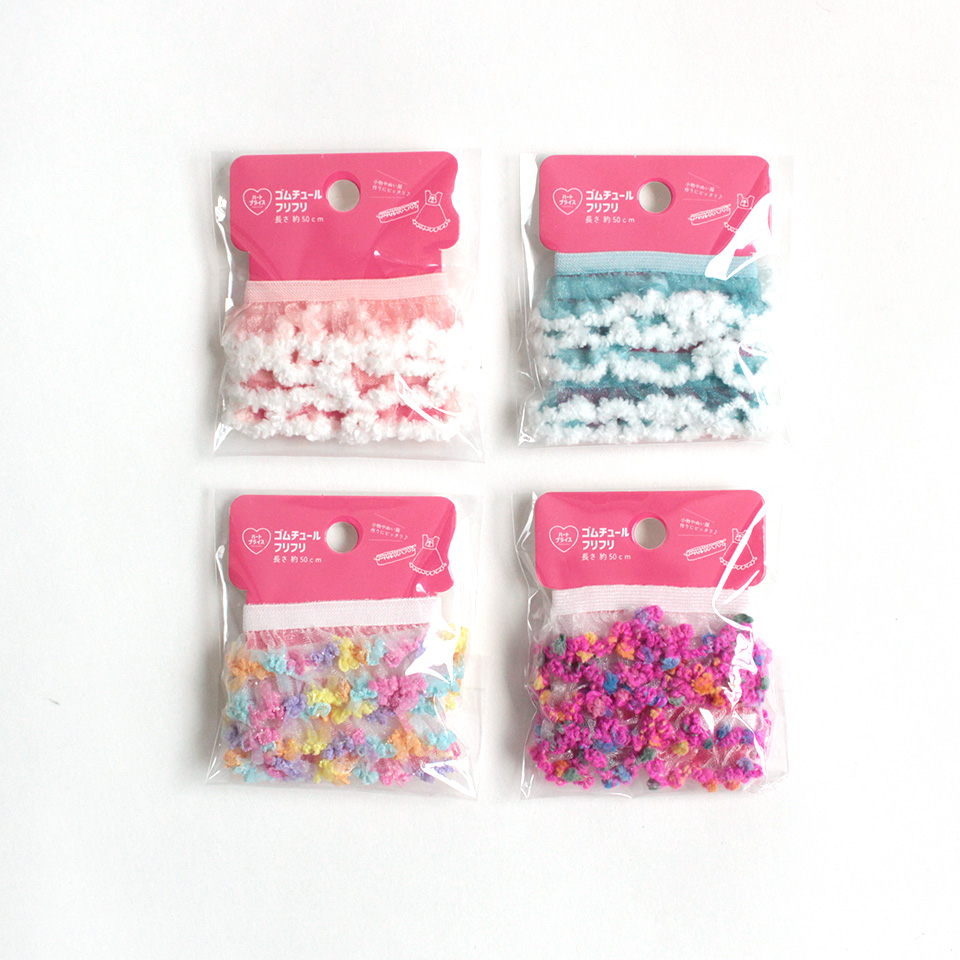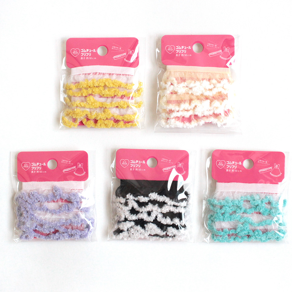 ゴムチュールは、片側に平ゴムを縫い込んだチュールリボン。