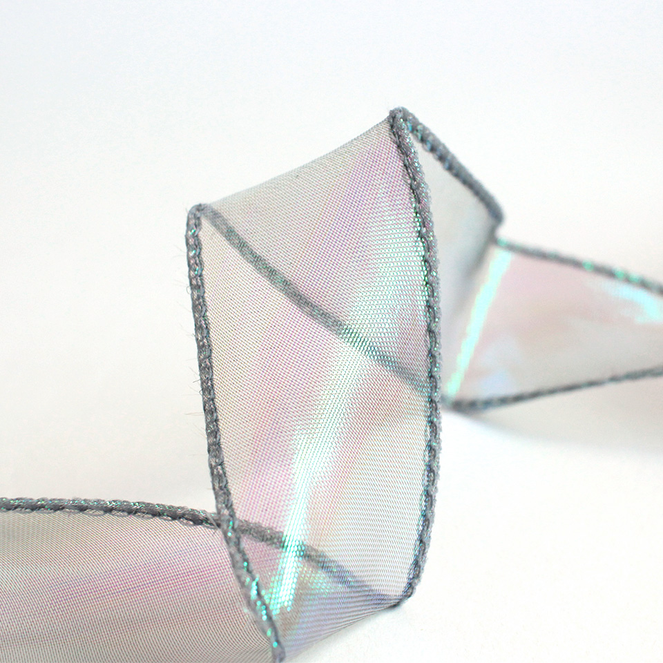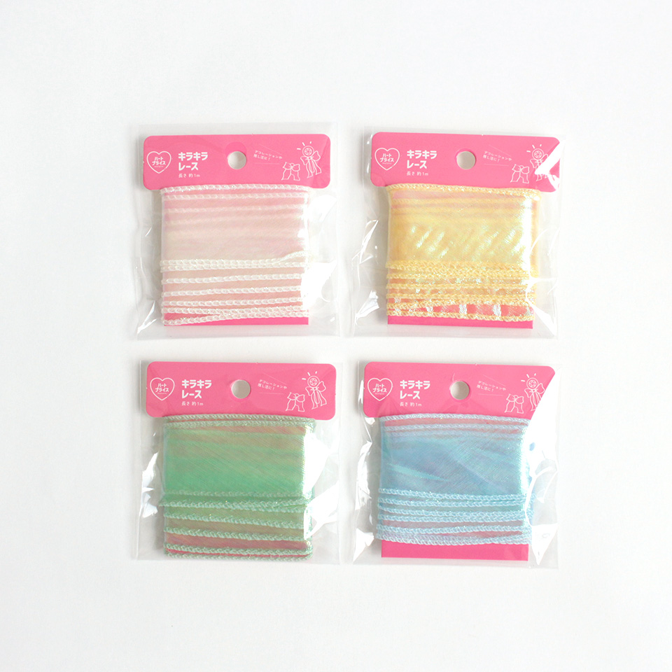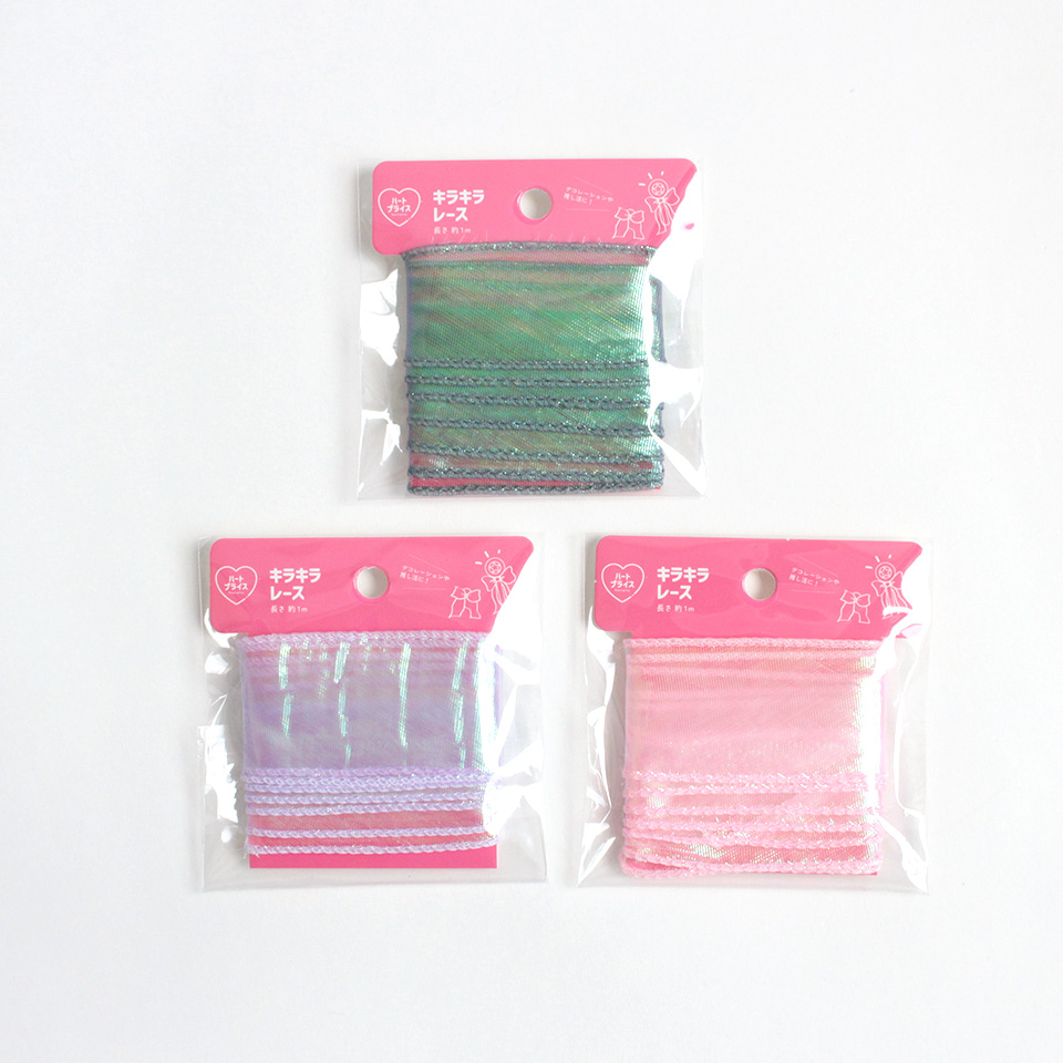 キラキラレースは、オーロラ加工を施した透け感のあるリボン。