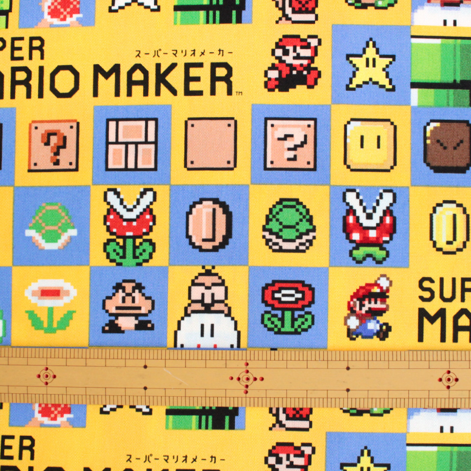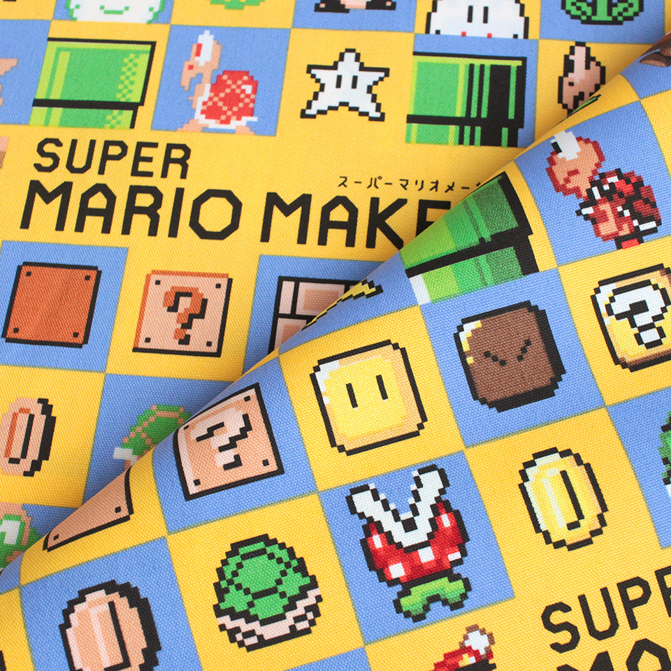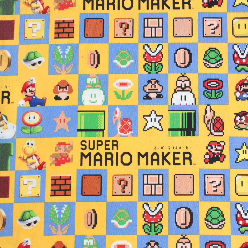 『作って遊ぶ』がコンセプトのマリオシリーズ「スーパーマリオメーカー」のプリント生地が新登場。