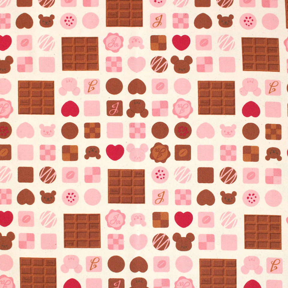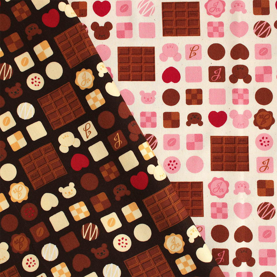 板チョコやハート型など、たくさんのチョコがぎっしり詰まった甘くてかわいらしい柄になりました。