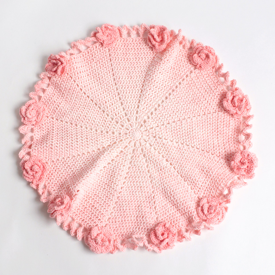 ひざ掛けやインテリアなど日常のちょっとしたシーンで使いやすい直径約52cmのブランケットが完成します。