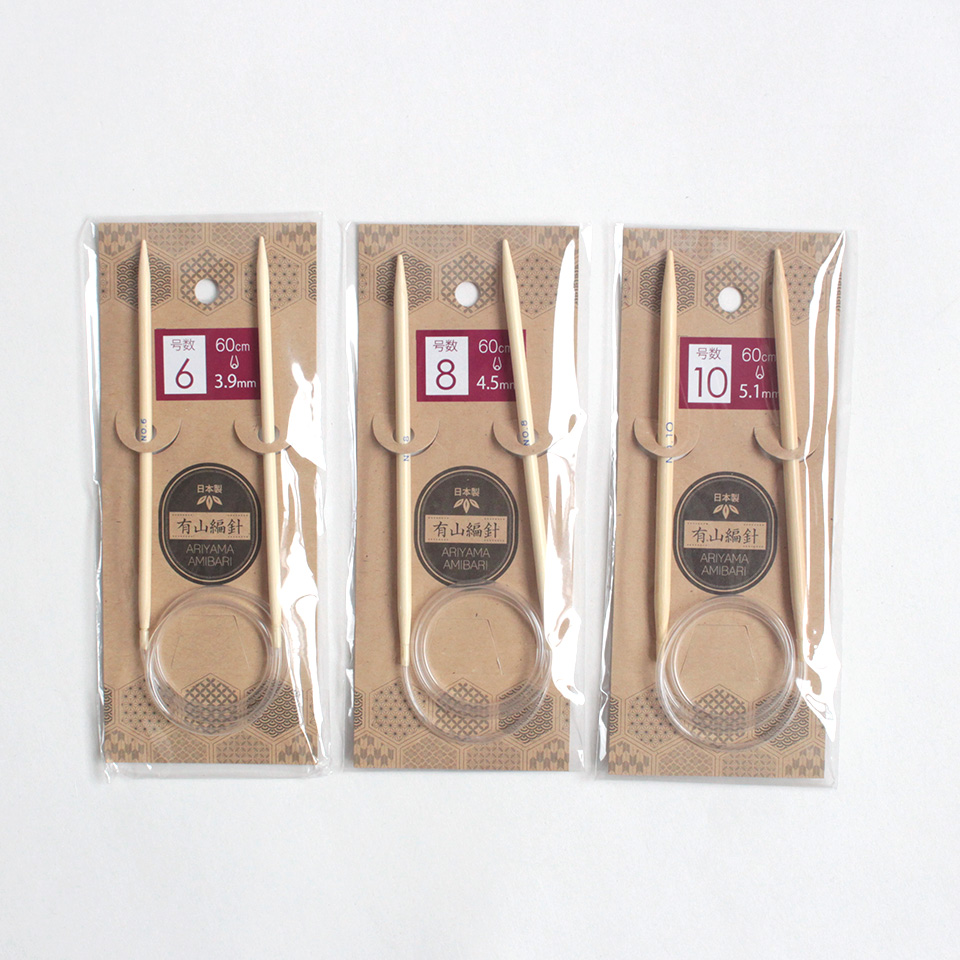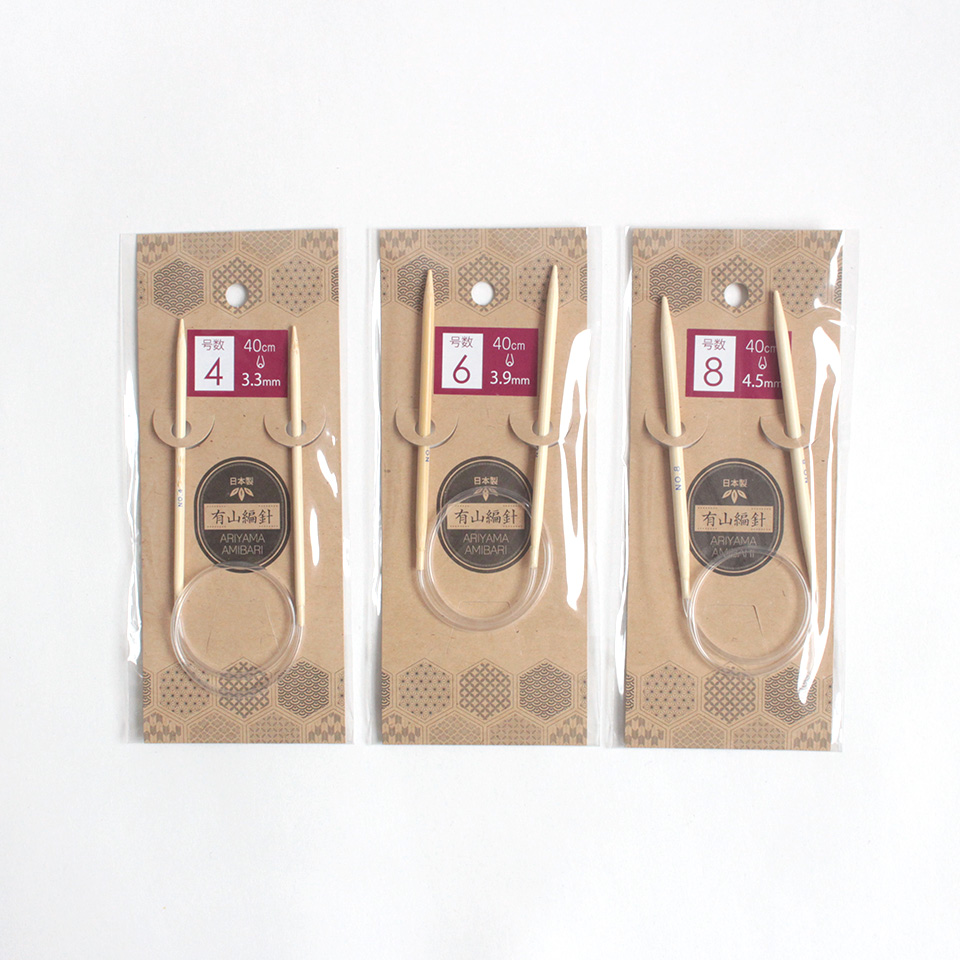 両細4本針、玉付き2本針、輪針のラインナップで、人気の高い号数サイズを取り揃えています。