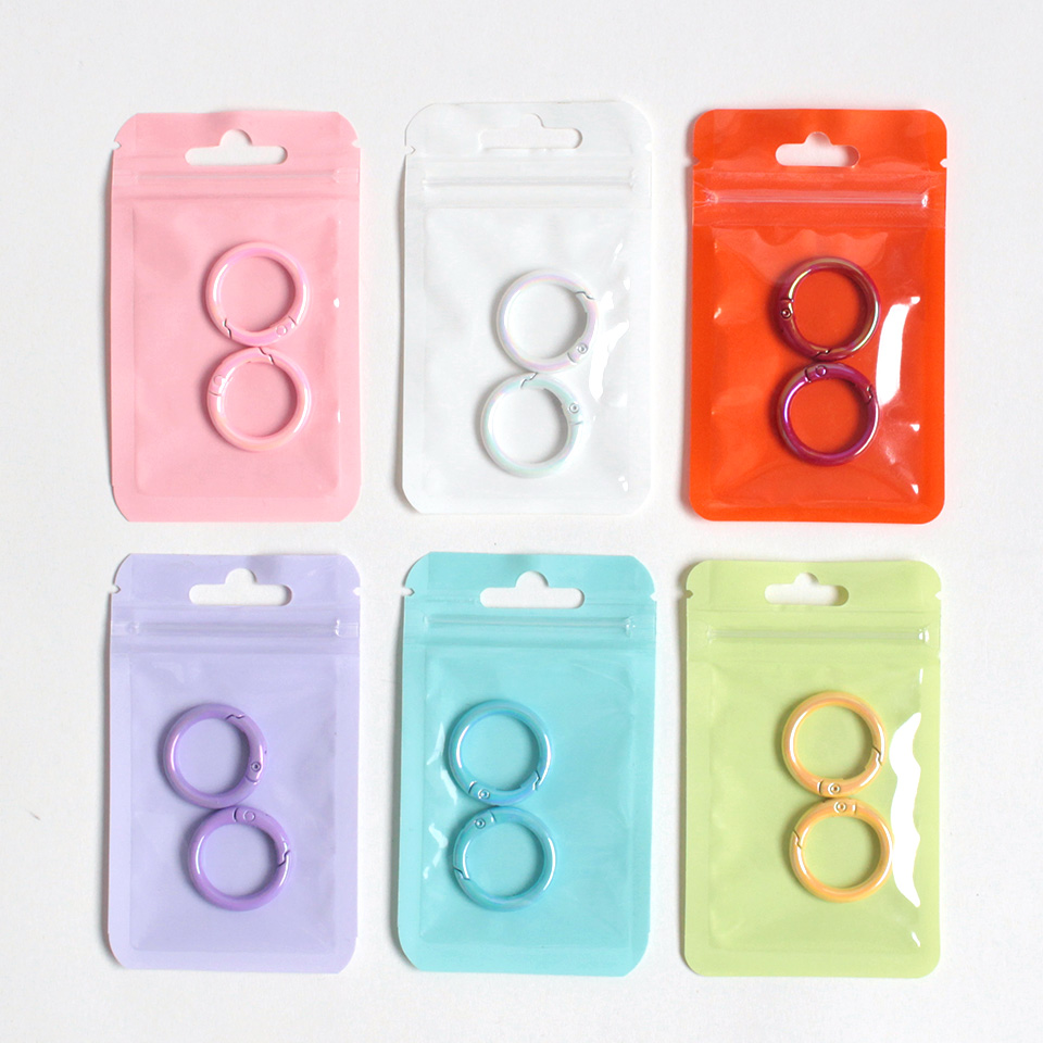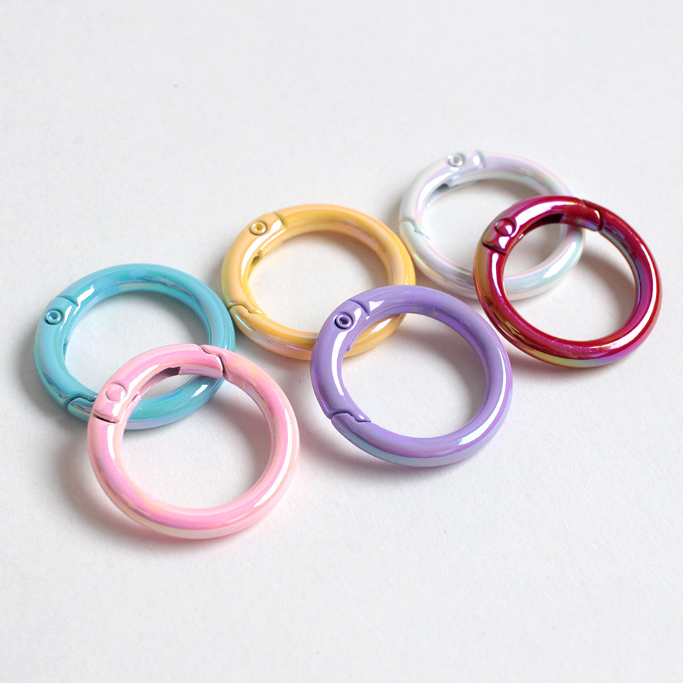 表面にオーロラ加工を施した丸型のカラビナです。