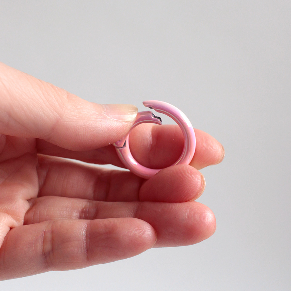 手作りのバッグチャームやキーホルダーのパーツとしてはもちろん、お手持ちアイテムのカラビナを付け替えるだけで、ぐっとキュートな印象になります