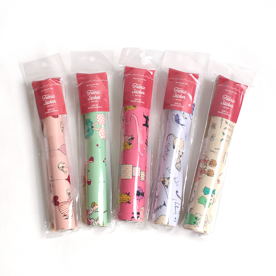 イラストレーター・くらはしれいさんのファブリックシリーズに、接着剤がついたファブリックステッカーが新登場!