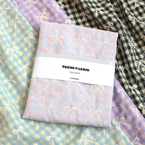 NEWカラフルチェック リボン刺しゅうカットクロス
