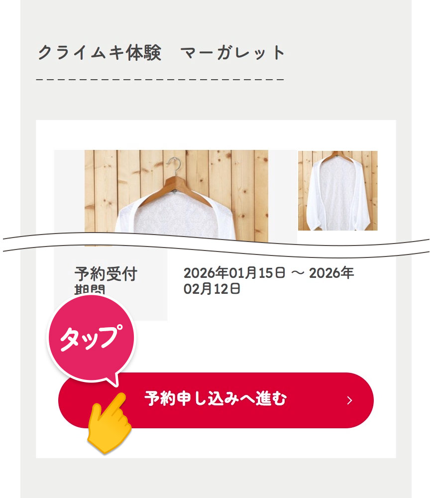 ワークショップ(レッスン内容)詳細を確認の上、ページ下部の【予約申し込みへ進む】ボタンをタップ