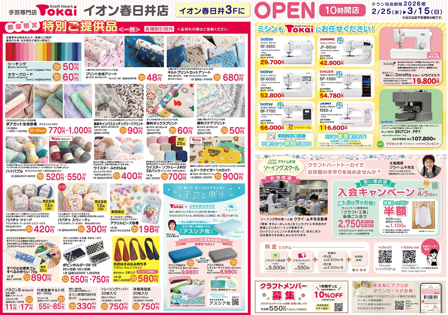 2026年2月25日(水)、愛知県春日井にあるイオン春日井ショッピングセンター3Fに、クラフトハートトーカイイオン春日井店が新しくオープンいたします!